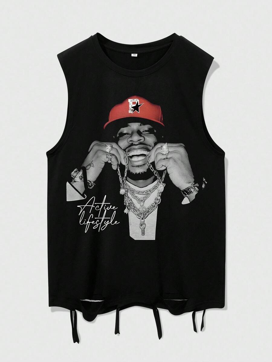 Street Life Canotta casual da uomo con stampa di ritratto, adatta per primavera/estate