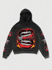 Street Life Felpa con cappuccio tagliata e ampia con stampa grafica, lavata e vissuta, stile streetwear da uomo