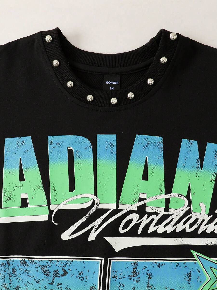Street Life Canotta larga da uomo con stampa e borchie