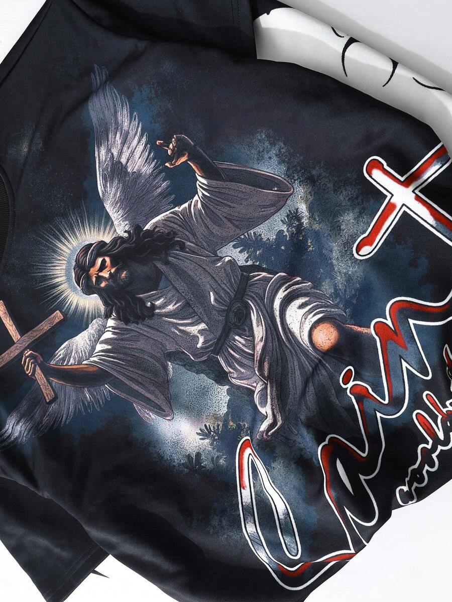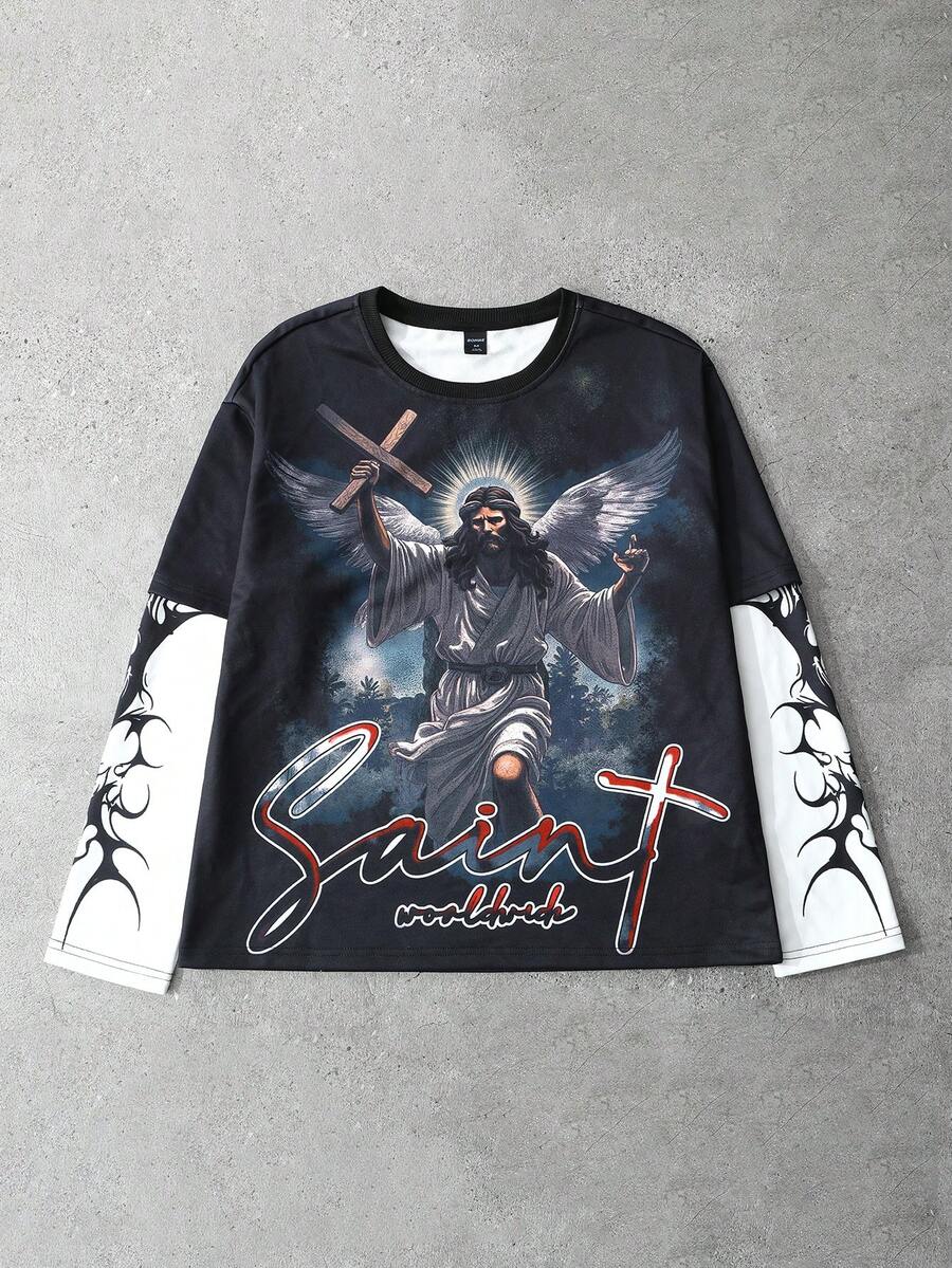 Street Life Felpa con cappuccio da uomo, maglietta a maniche lunghe con collo rotondo 2 in 1, design di stampa religiosa unica, adatta per uscite ed esposizioni