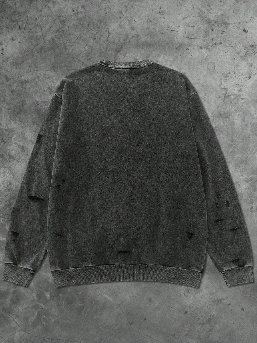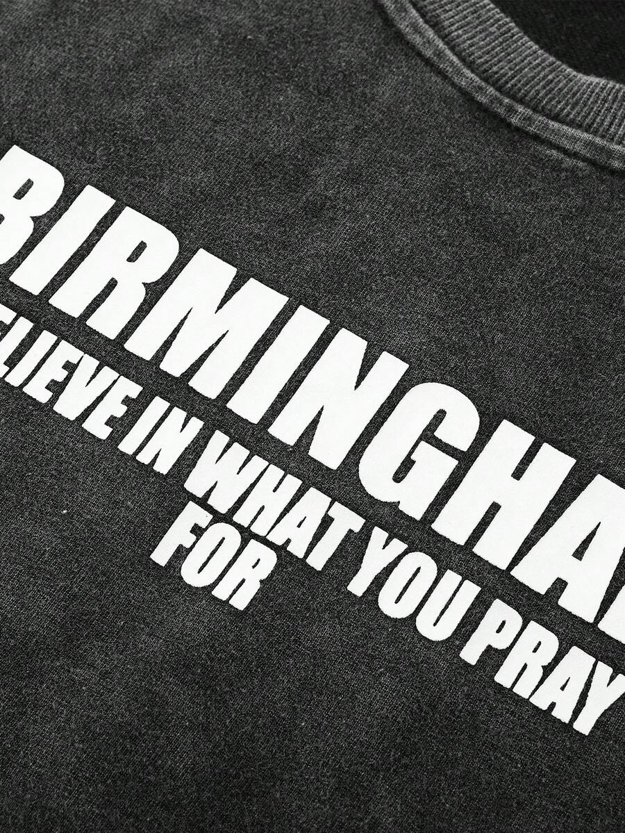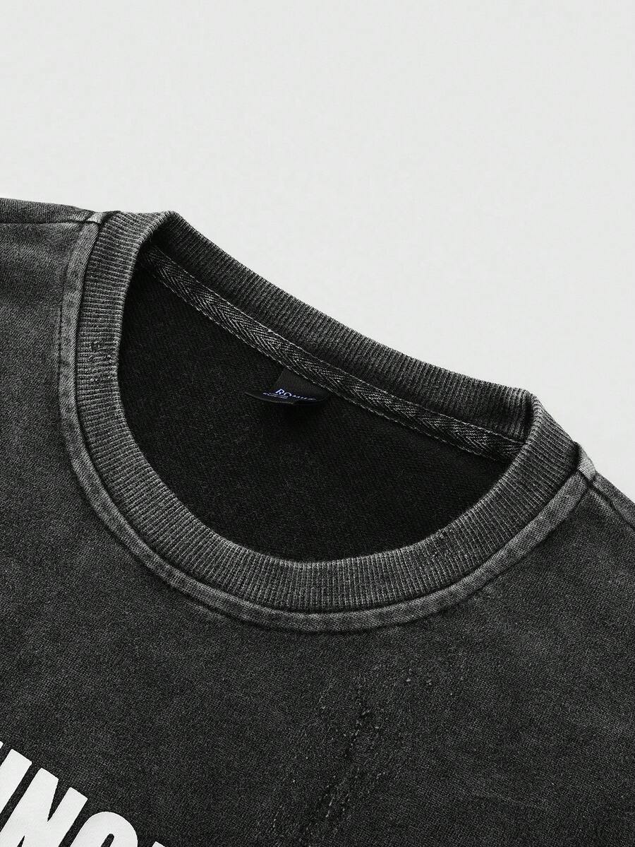 Street Life Felpa girocollo da uomo, stile americano da strada, lavata con acido, effetto consumato