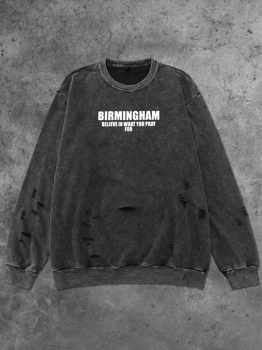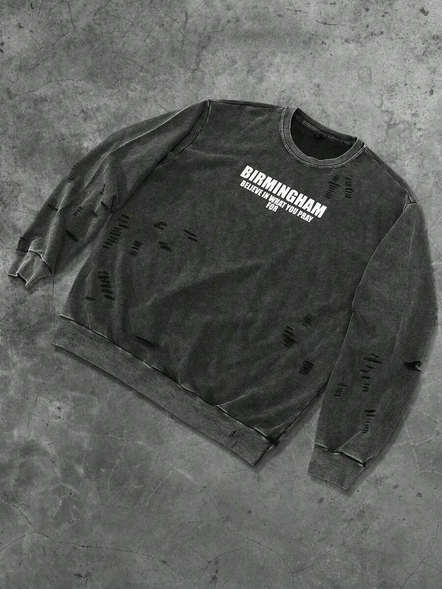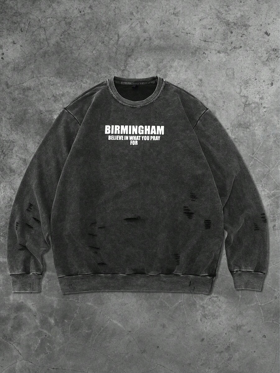 Street Life Felpa girocollo da uomo, stile americano da strada, lavata con acido, effetto consumato