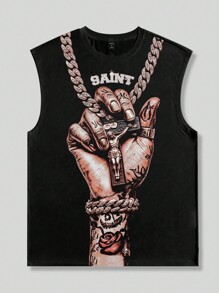 Street Life Canotta casual da uomo con stampa a lettere e collo a giro