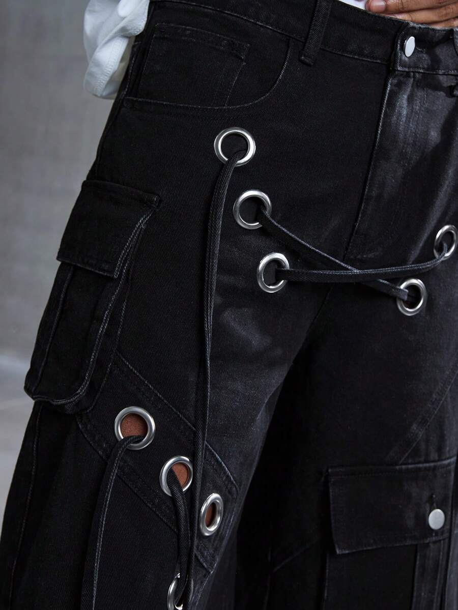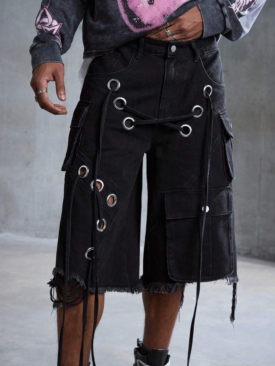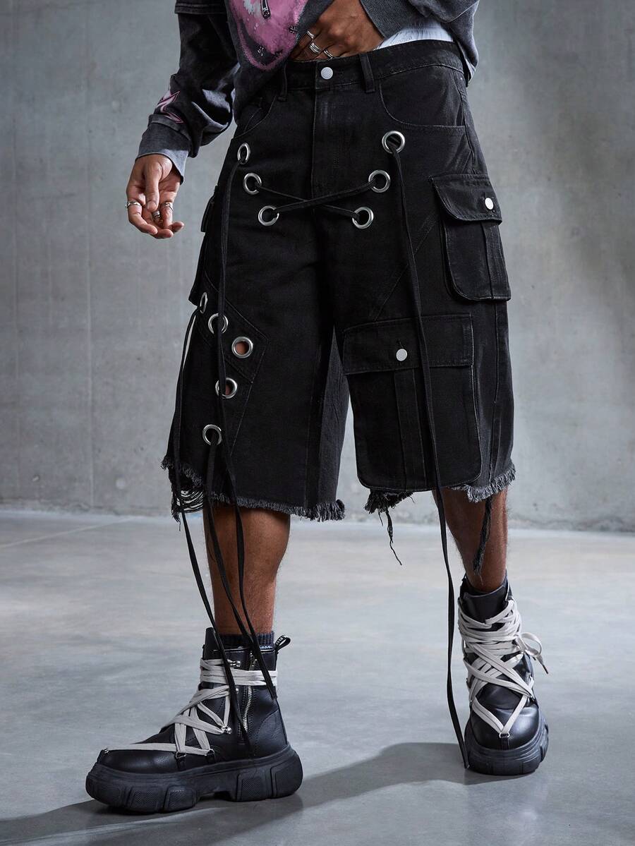 Street Life Pantaloncini cargo da uomo stile punk di strada, vita bassa, stile loose e rovinato