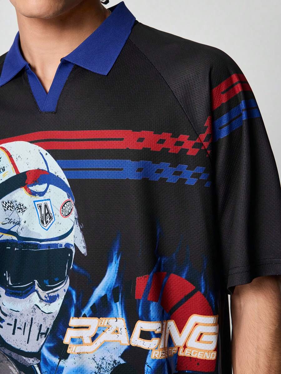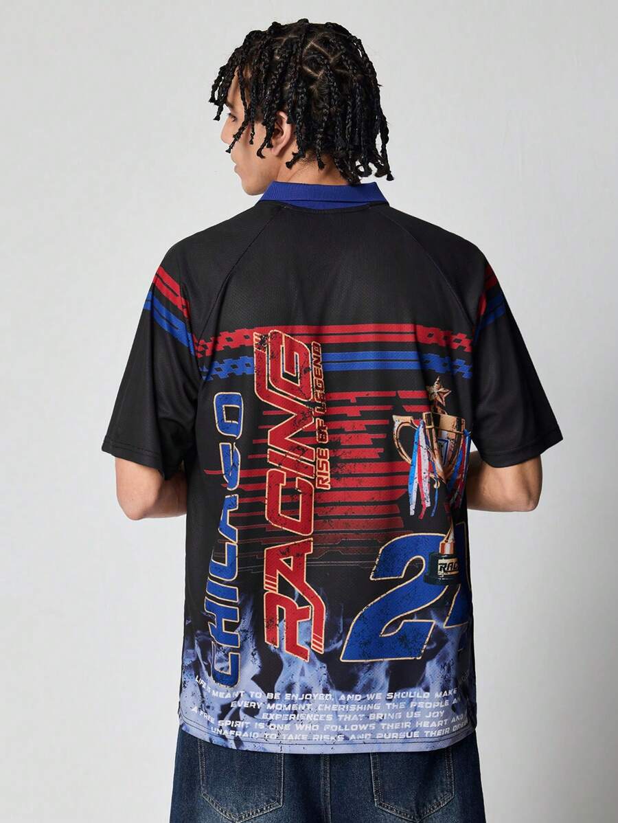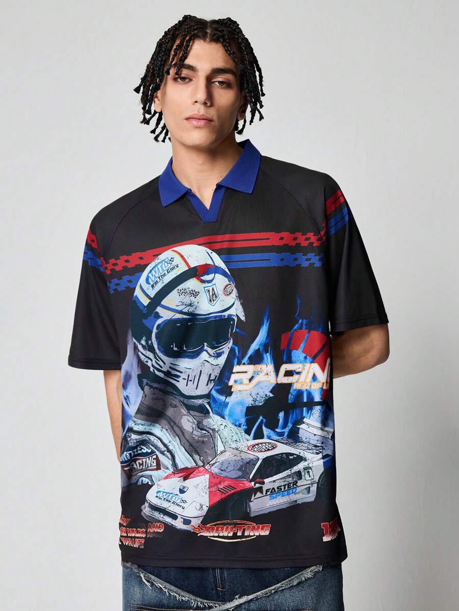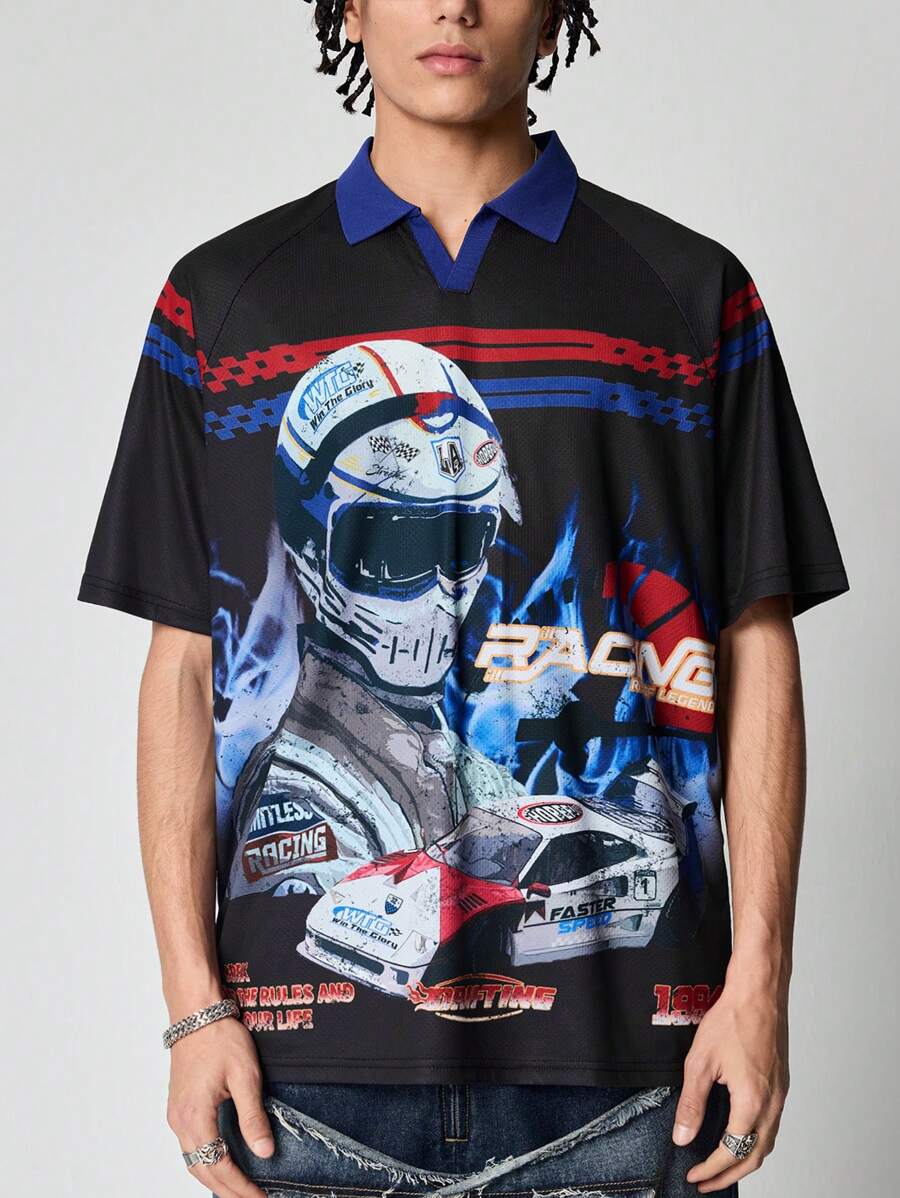 Street Life Polo shirt a maniche corte da uomo con grafica di lettere e auto