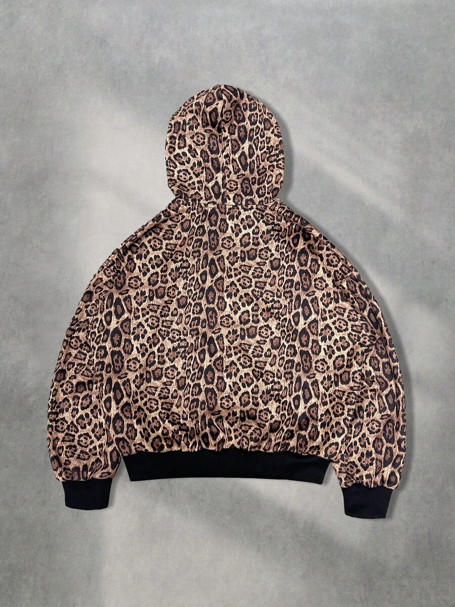 Street Life Felpa da uomo stile retrò con stampa leopardata, modello oversize e corto