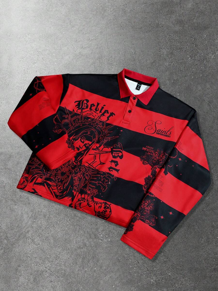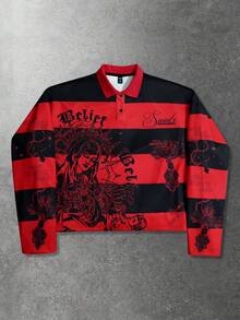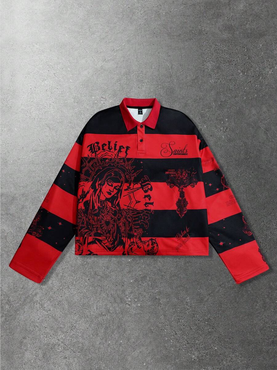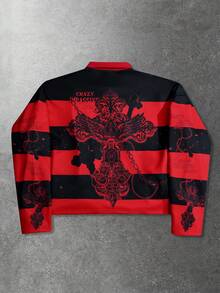 Street Life Felpa uomo retrò con grafica a righe e stampa della Vergine Maria, stile americano da strada