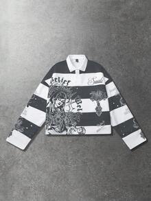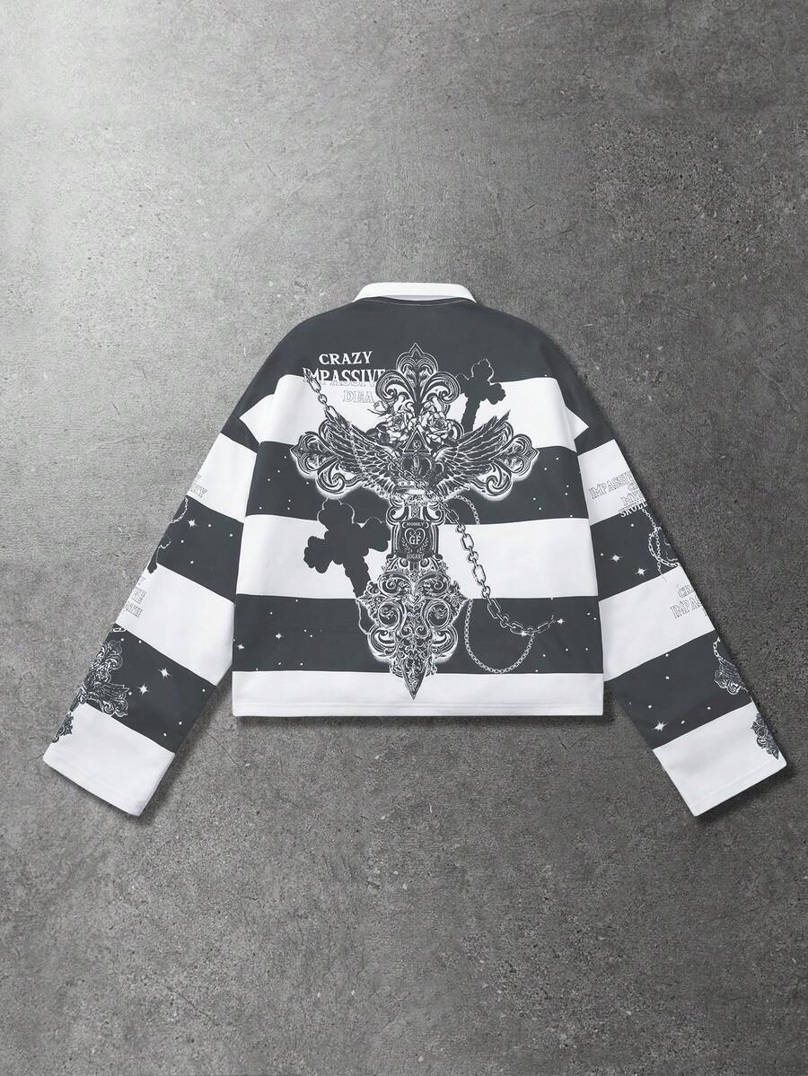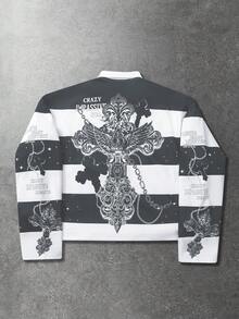 Street Life Felpa da uomo stile retrò con stampa grafica della Vergine Maria e righe, in stile street