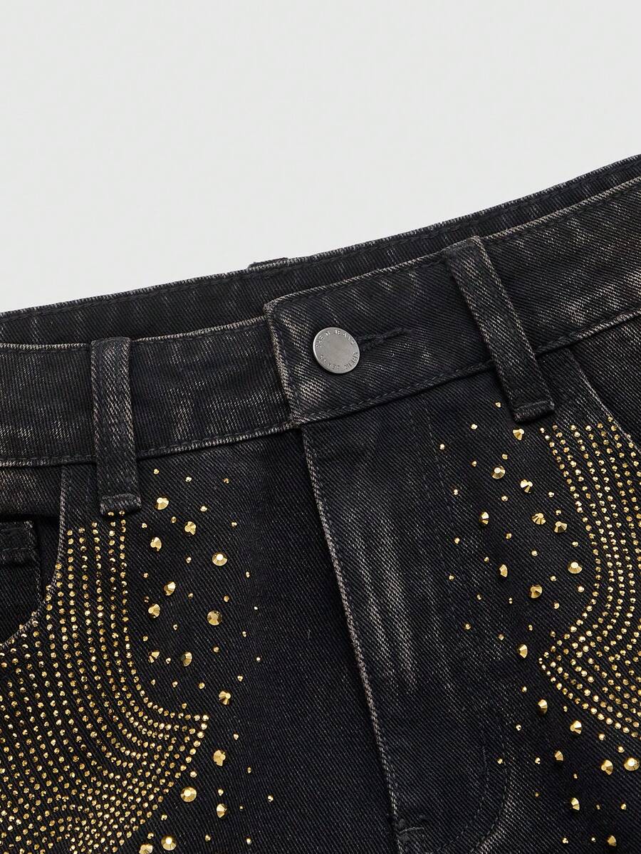 Street Life Jeans casual larghi con tasche impreziosite da strass per uomo