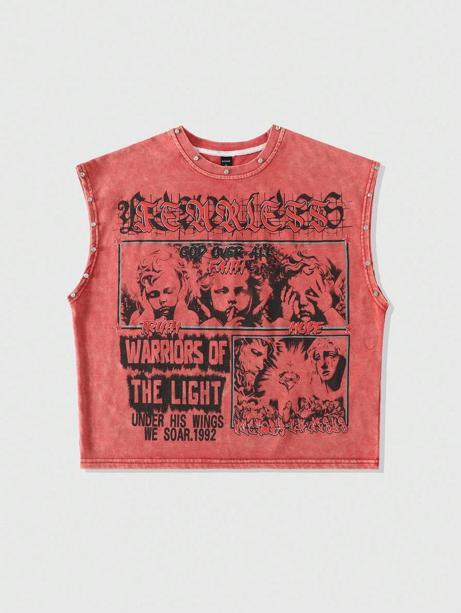 Street Life Canotta da uomo con scollo a equipaggio, lavata, con stampa di slogan e figure con strass, stile anni 2000