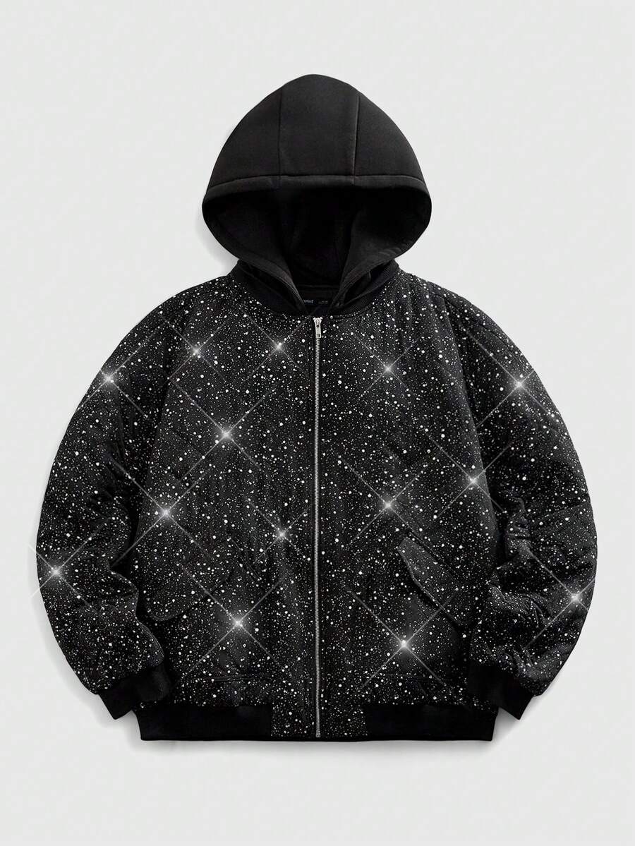 Street Life Giacca invernale casual con cappuccio e cerniera frontale lucida da uomo