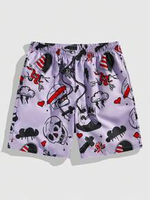 Street Life Short casual casual con stampa a teschio e cuore per uomo con coulisse in vita