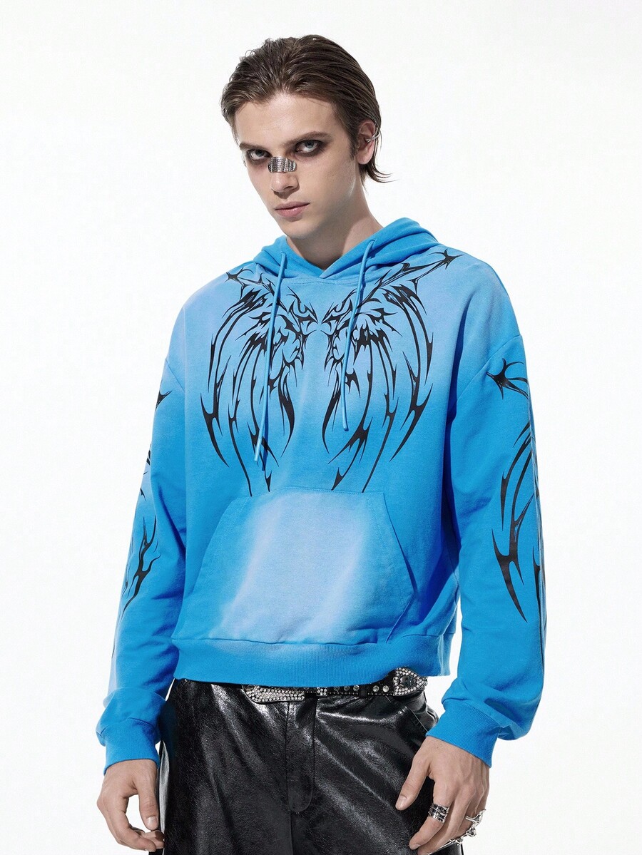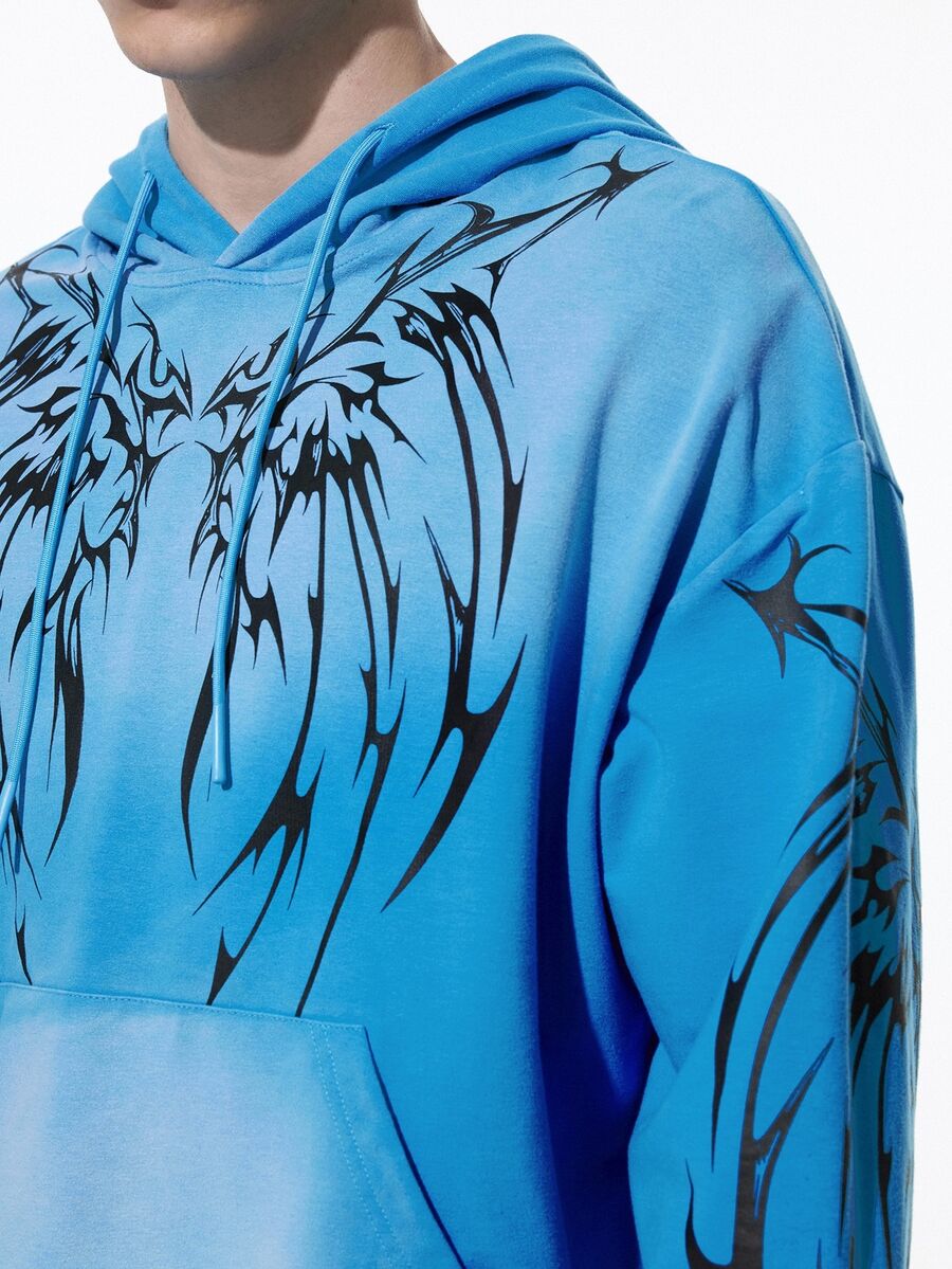 Street Life Felpa con cappuccio blu cielo con ali a spina d'uomo