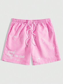 Street Life Pantaloncini da uomo in tessuto con stampa di slogan e coulisse, stile calcistico per uso quotidiano, primavera ed estate, adatti per la scuola