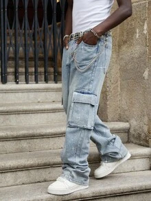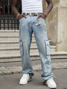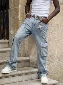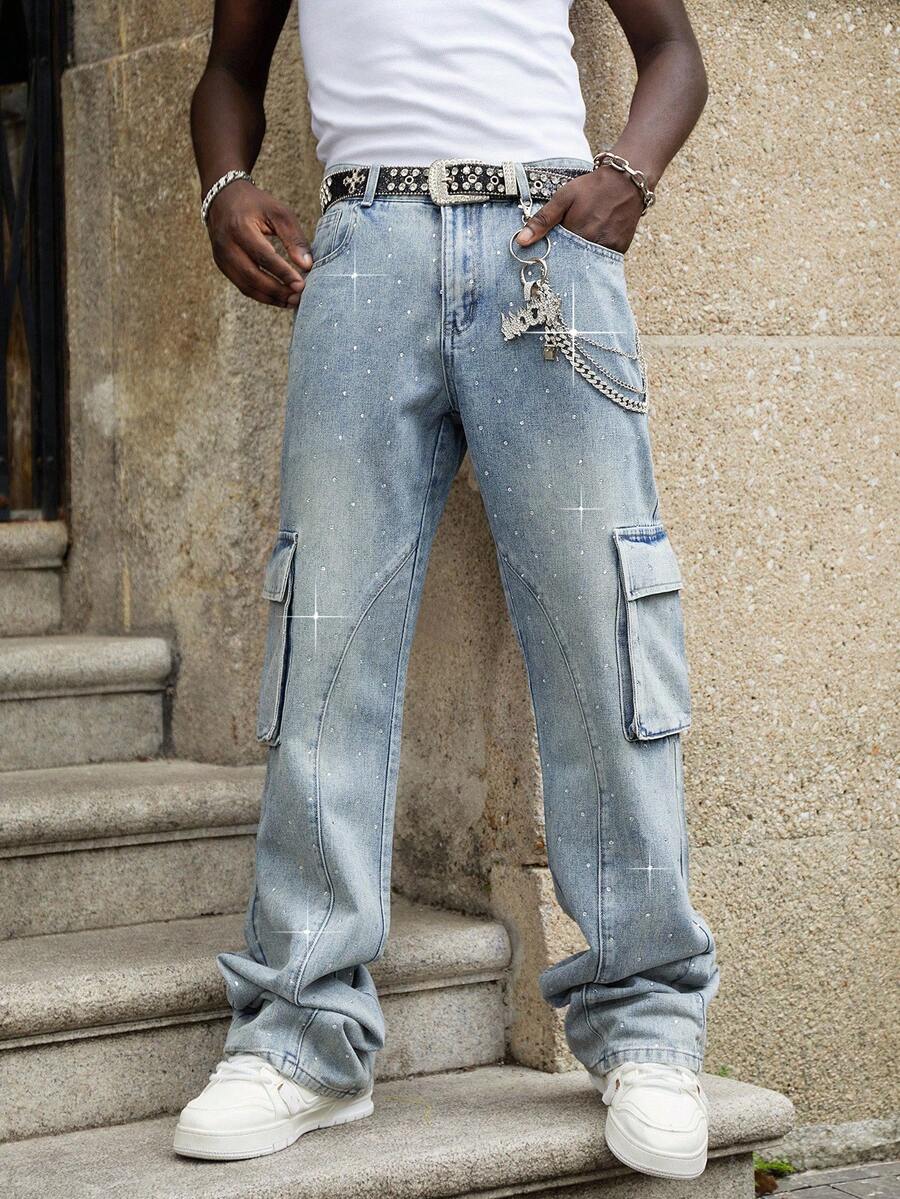 Street Life Jeans di jeans a strati con diamanti scintillanti per uomo