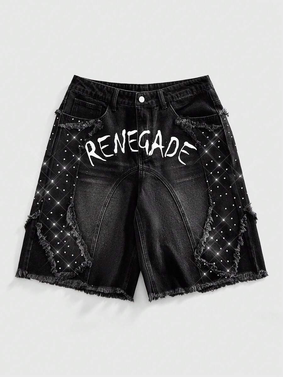 Street Life Pantaloncini di jeans larghi e scintillanti con diamanti per uomo