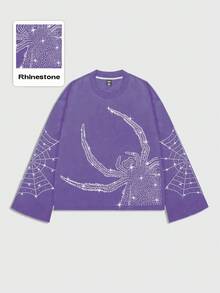 Street Life Maglietta a maniche lunghe da uomo con motivo a diamanti scintillanti, stile oversize corto, autunnale, stile anni 2000