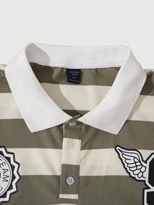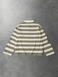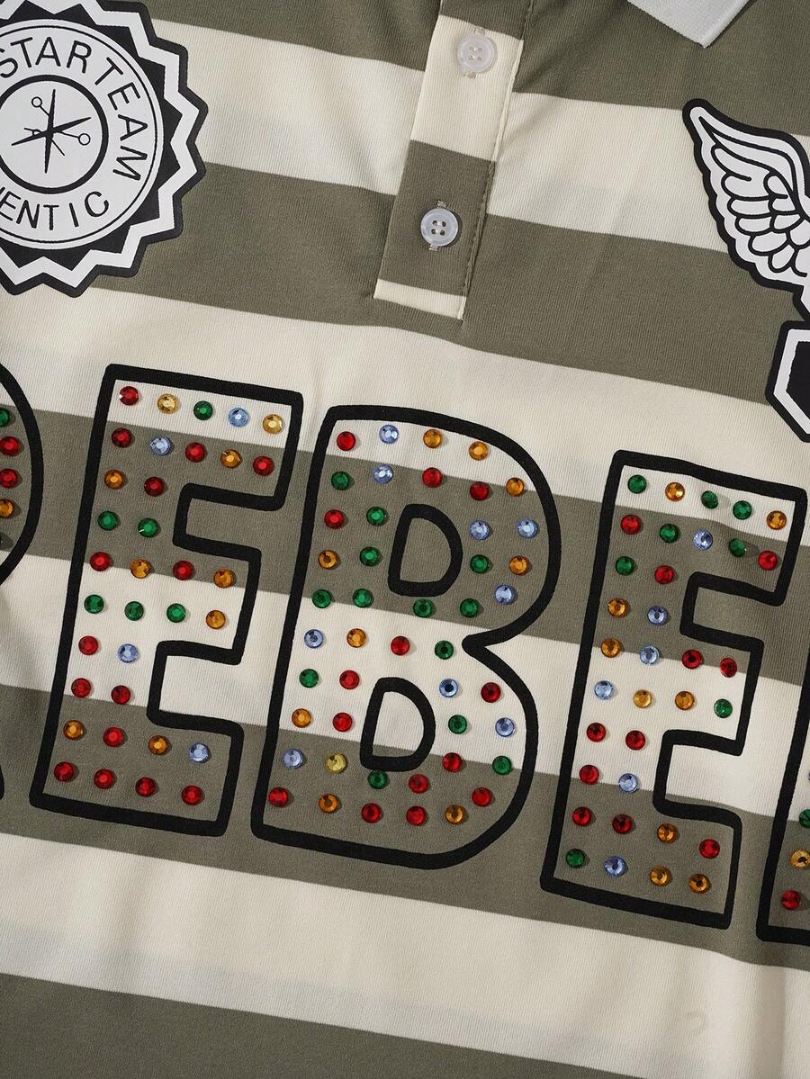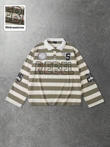 Street Life Camicia polo a maniche lunghe con vestibilità ampia e righe scintillanti con diamanti per uomo
