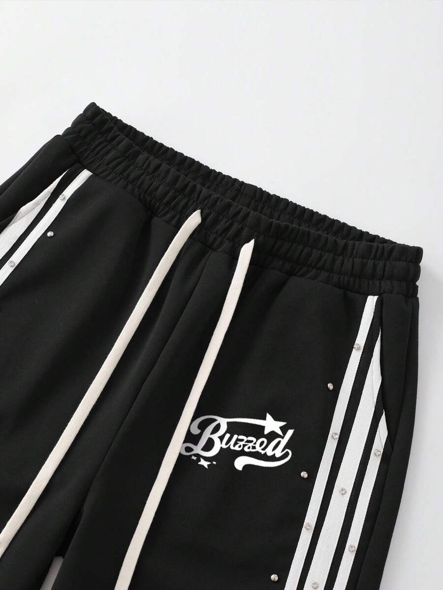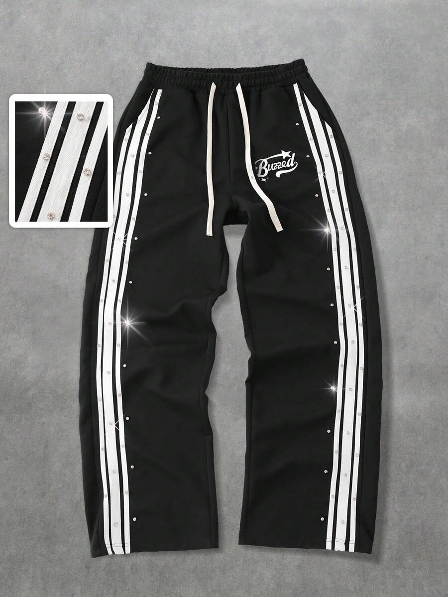 Street Life Pantaloni della tuta larghi da uomo con vita con coulisse e strisce di diamanti scintillanti