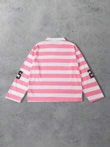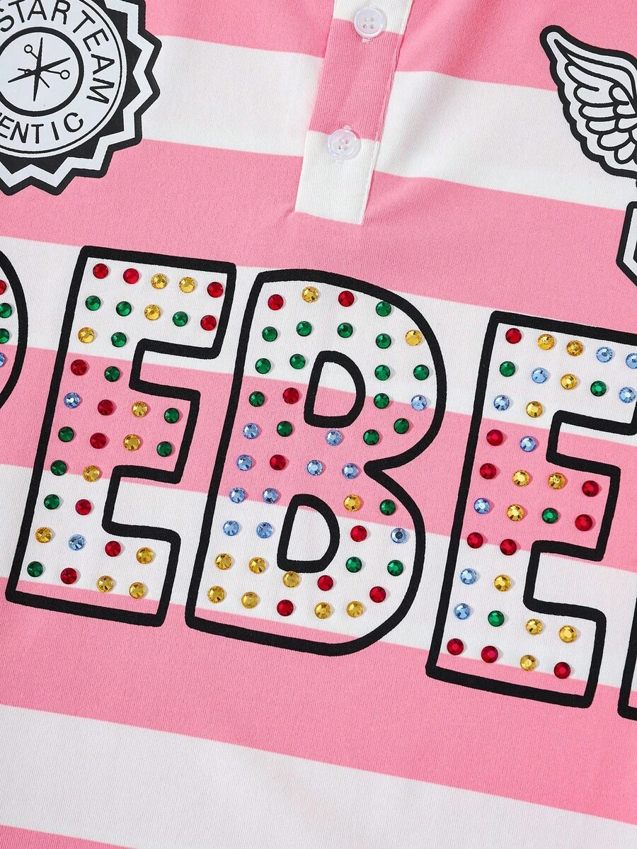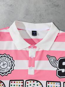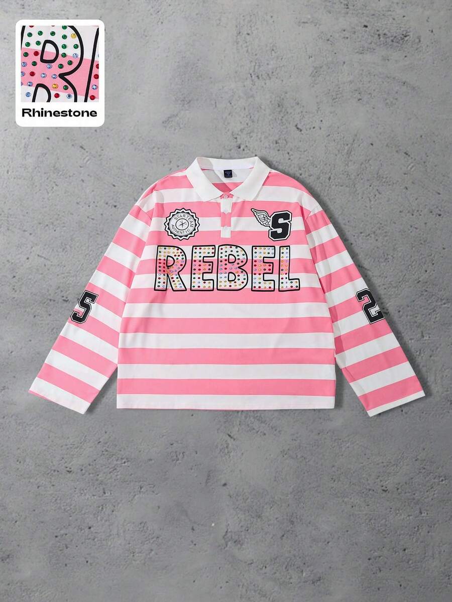 Street Life Camicia polo a maniche lunghe con vestibilità ampia, a righe e con diamanti scintillanti, adatta per l'autunno