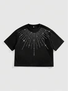 Street Life Maglietta a maniche corte oversize da uomo con strass scintillanti