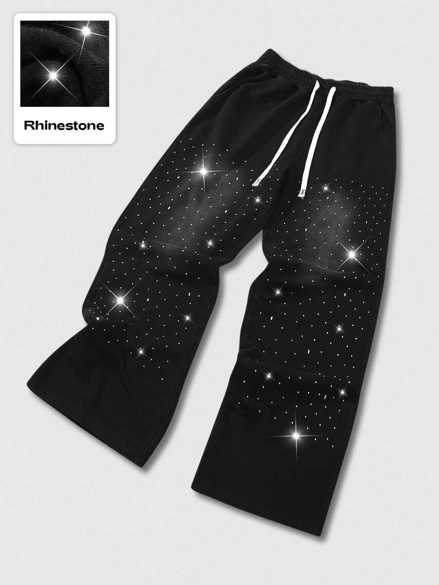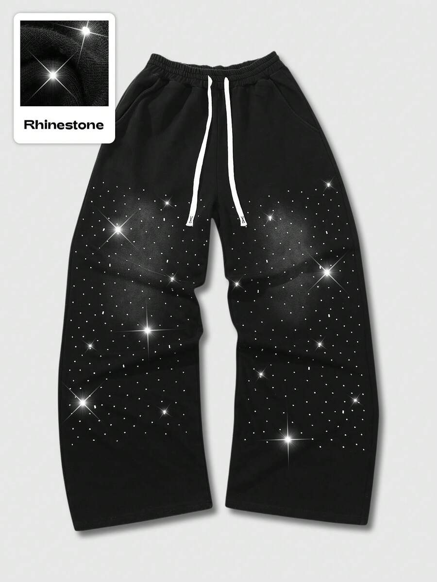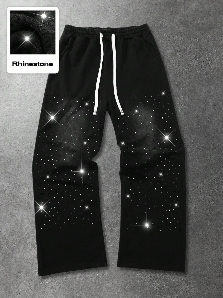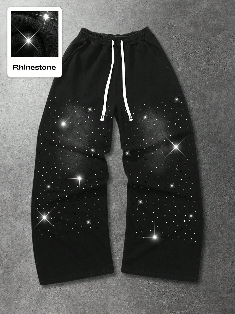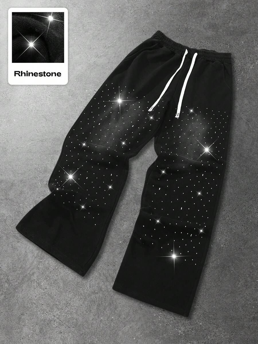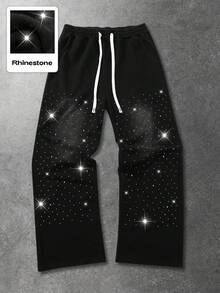 Pantaloni della tuta da uomo a gamba dritta con effetto strass in stile strada americana