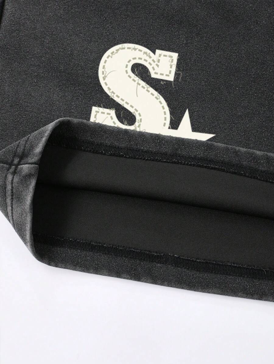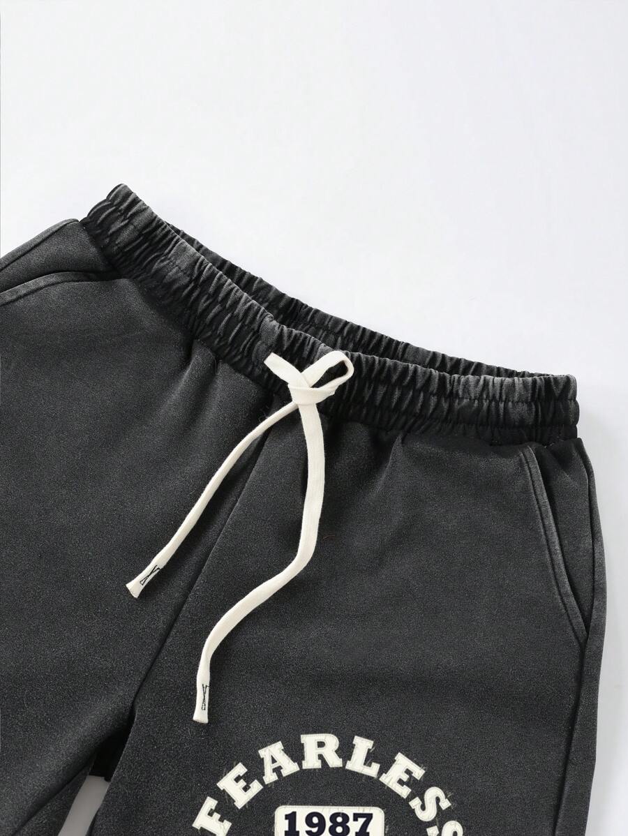 Street Life Pantaloncini larghi da uomo con applicazioni di lettere e lavaggio consumato