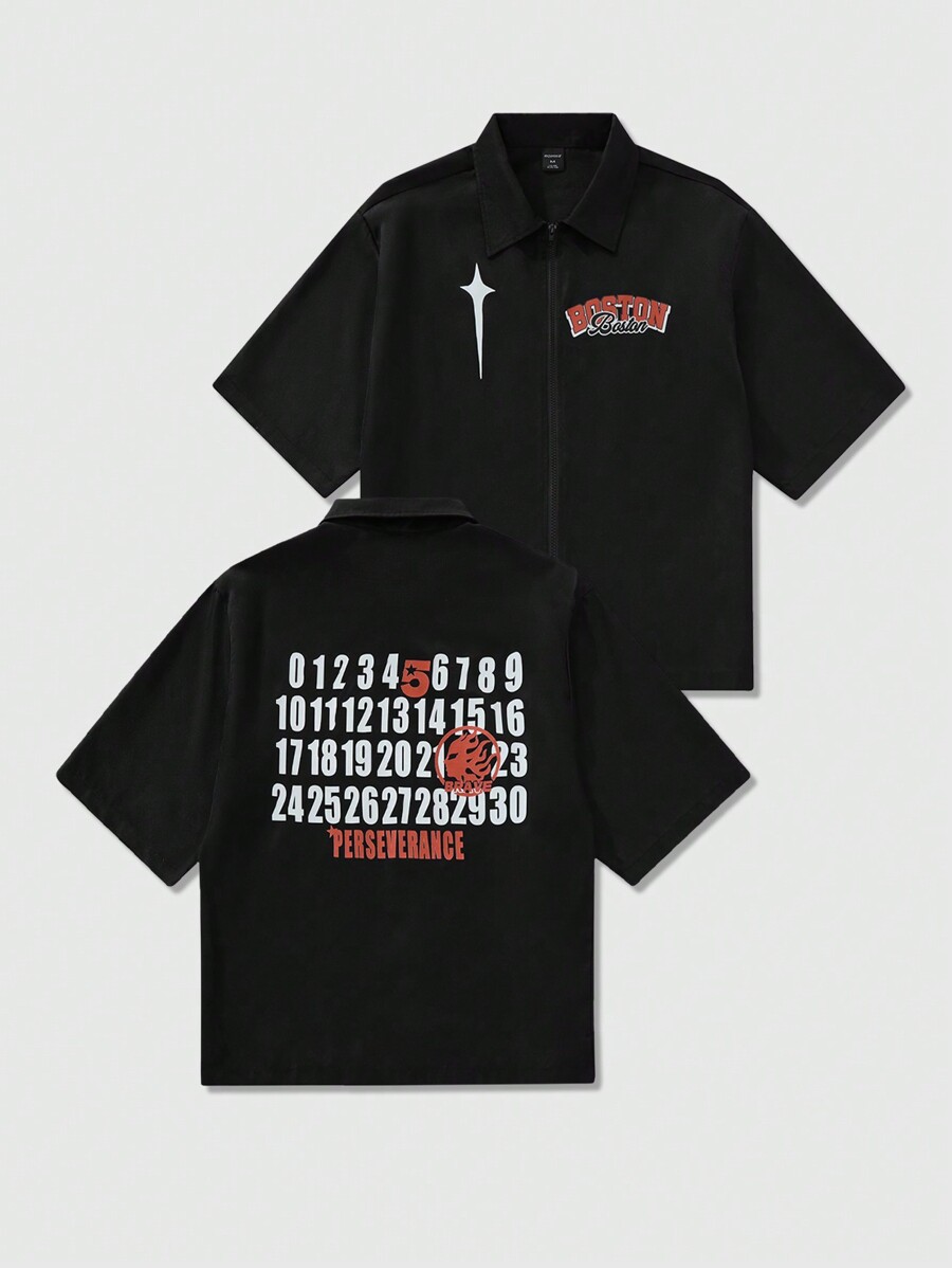 Street Life Camicia casual stampata da uomo, minimalista e alla moda per uso quotidiano