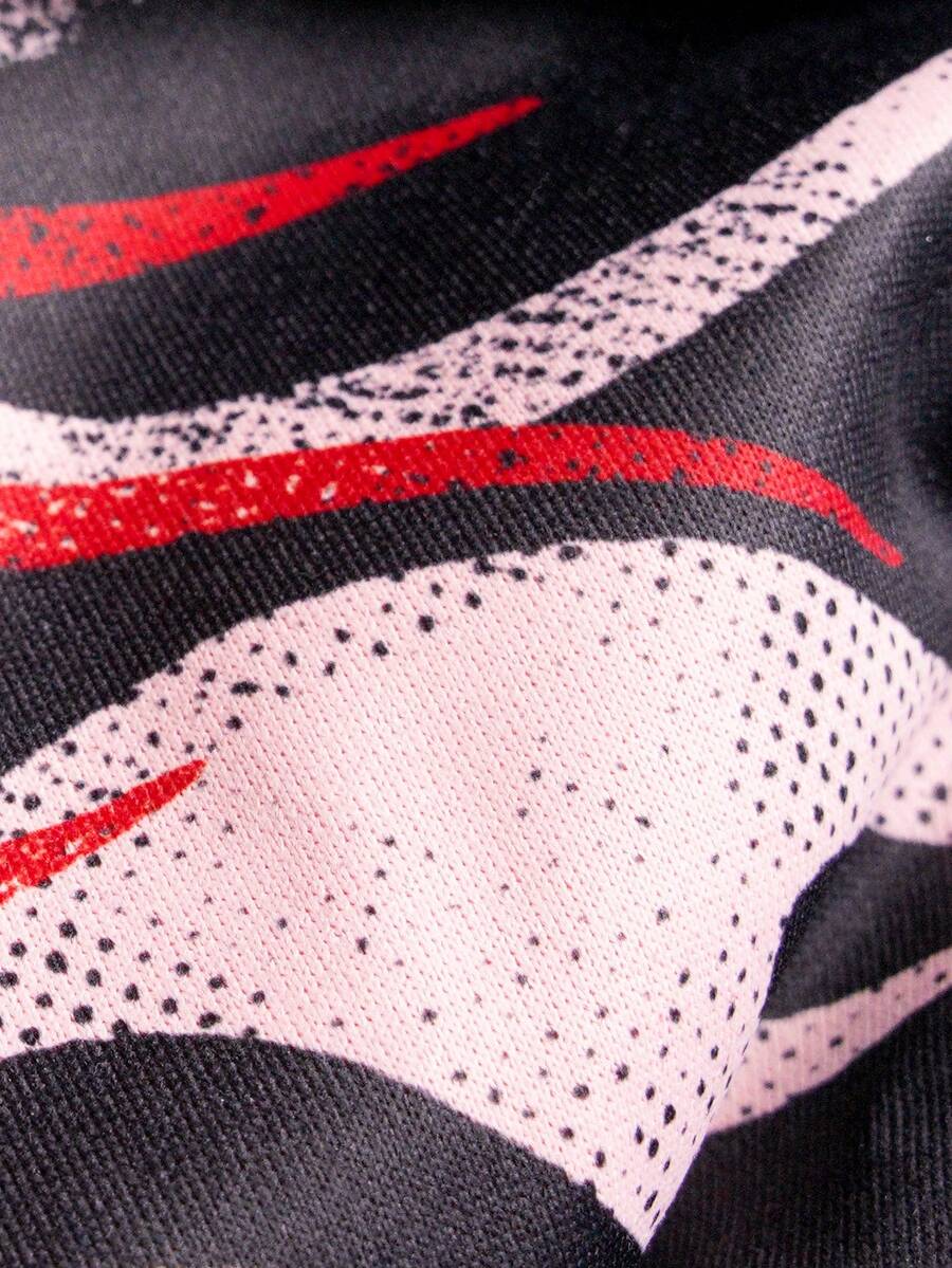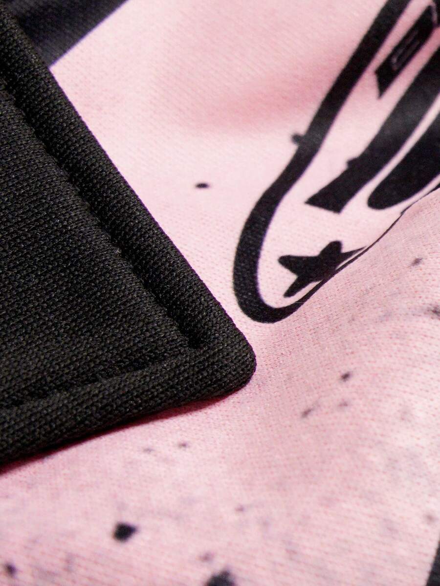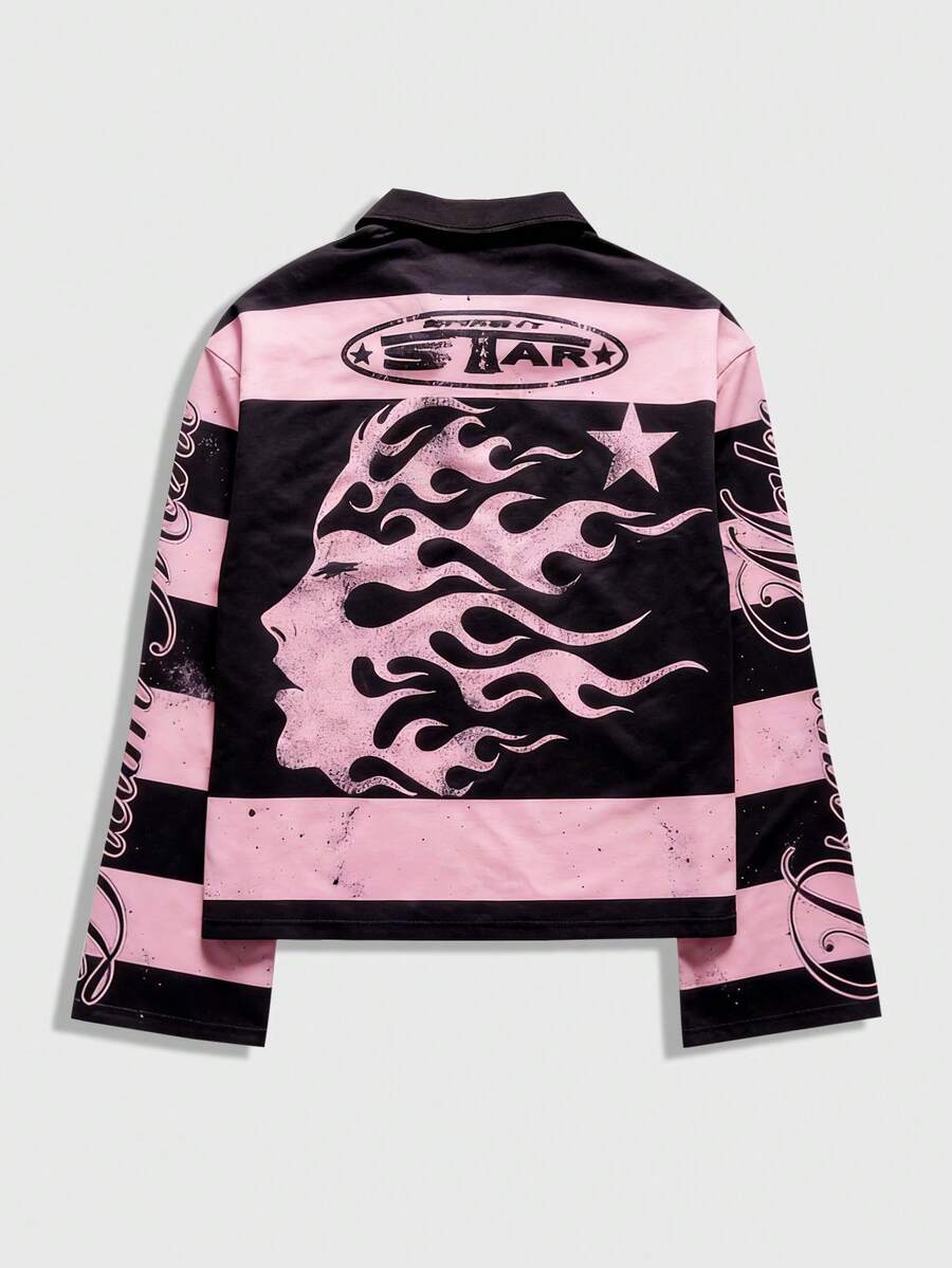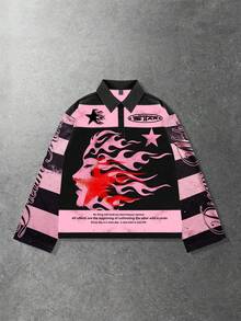 Street Life Maglietta a maniche lunghe con colletto a righe e stampa, stile casual da college per uomo