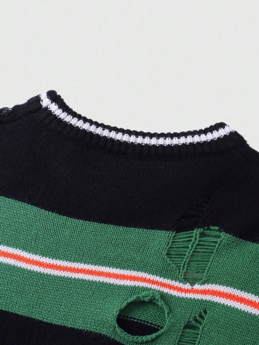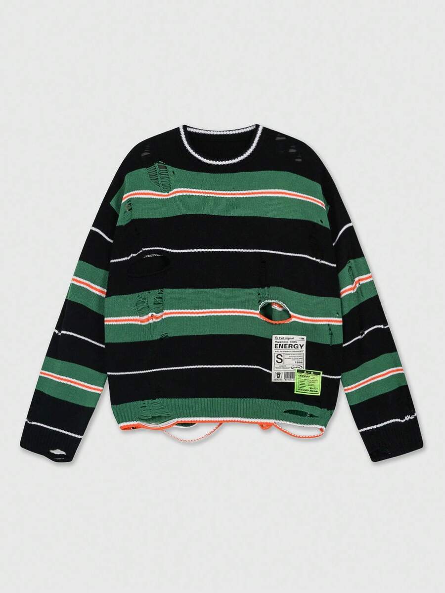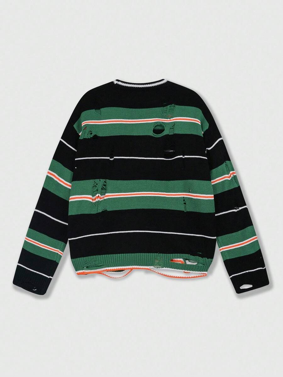 Street Life Maglione a maniche lunghe a righe da uomo, vestibilità ampia e corta, autunno inverno