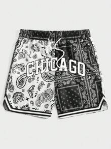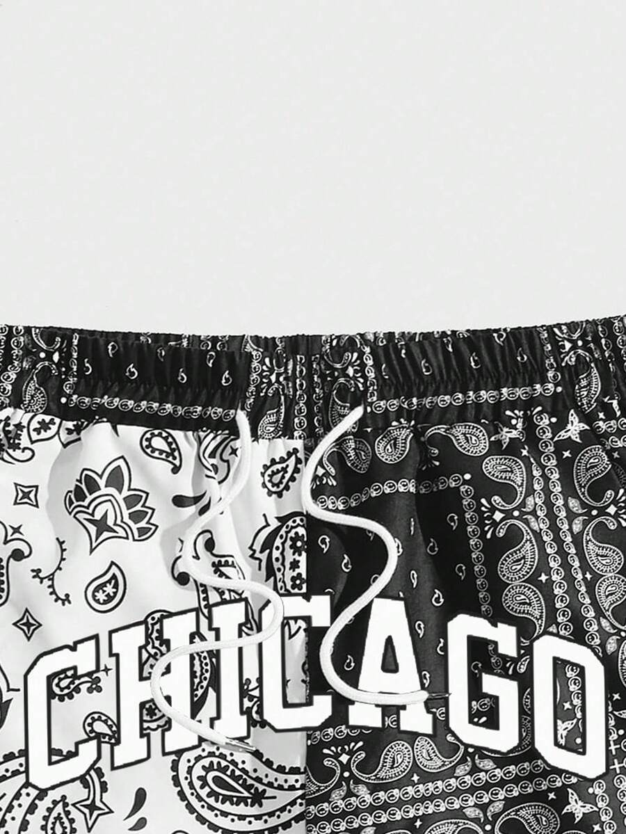 Street Life Pantaloncini casual estivi da uomo con stampa a fiori di anacardi e colori a contrasto
