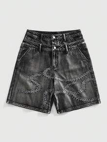 Street Life Pantaloncini di jeans casual estivi da uomo con doppia vita e ricamo