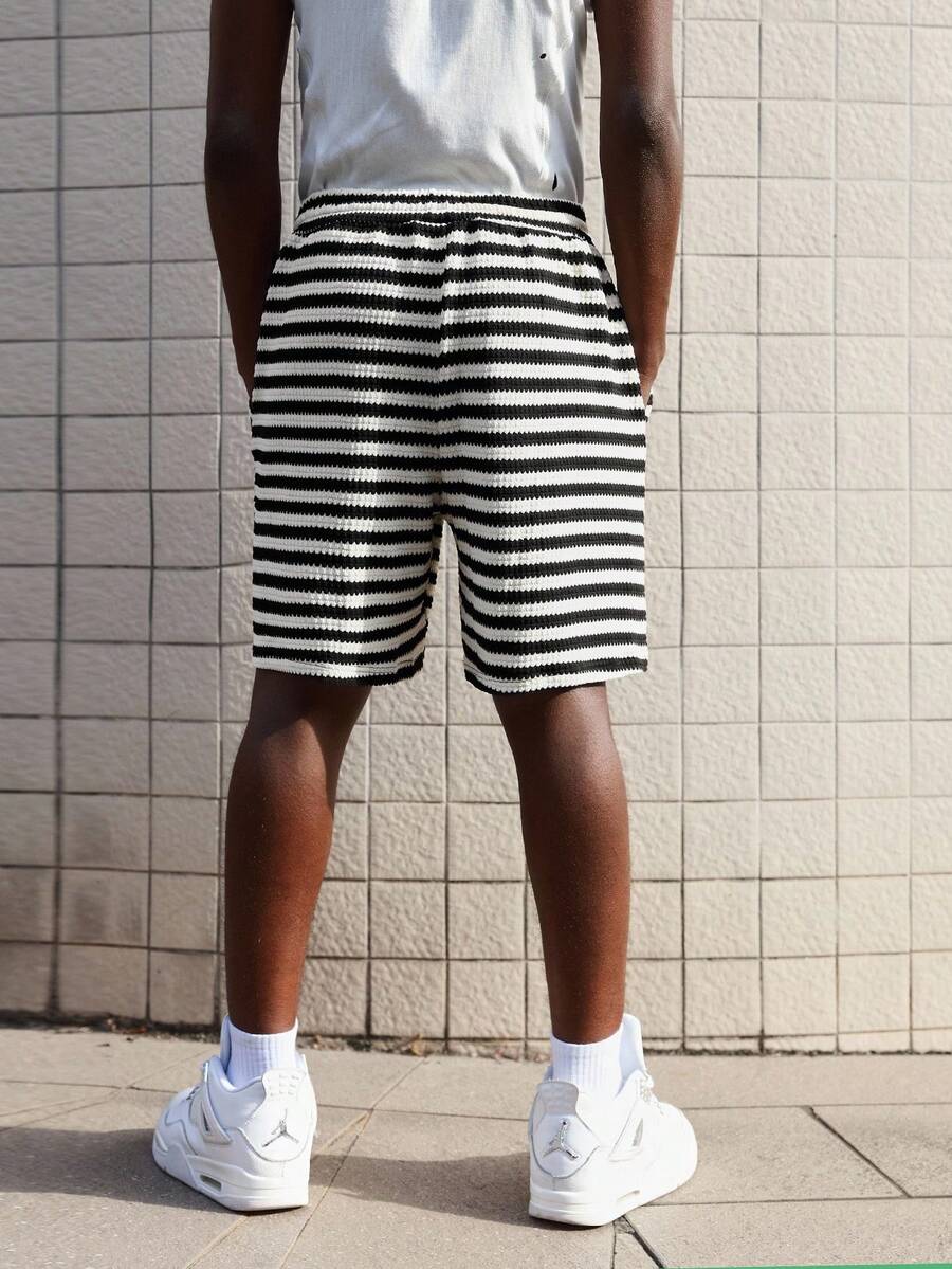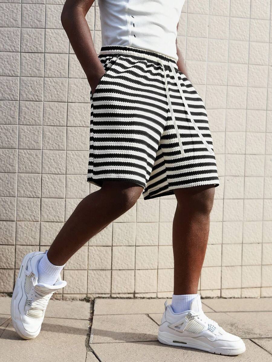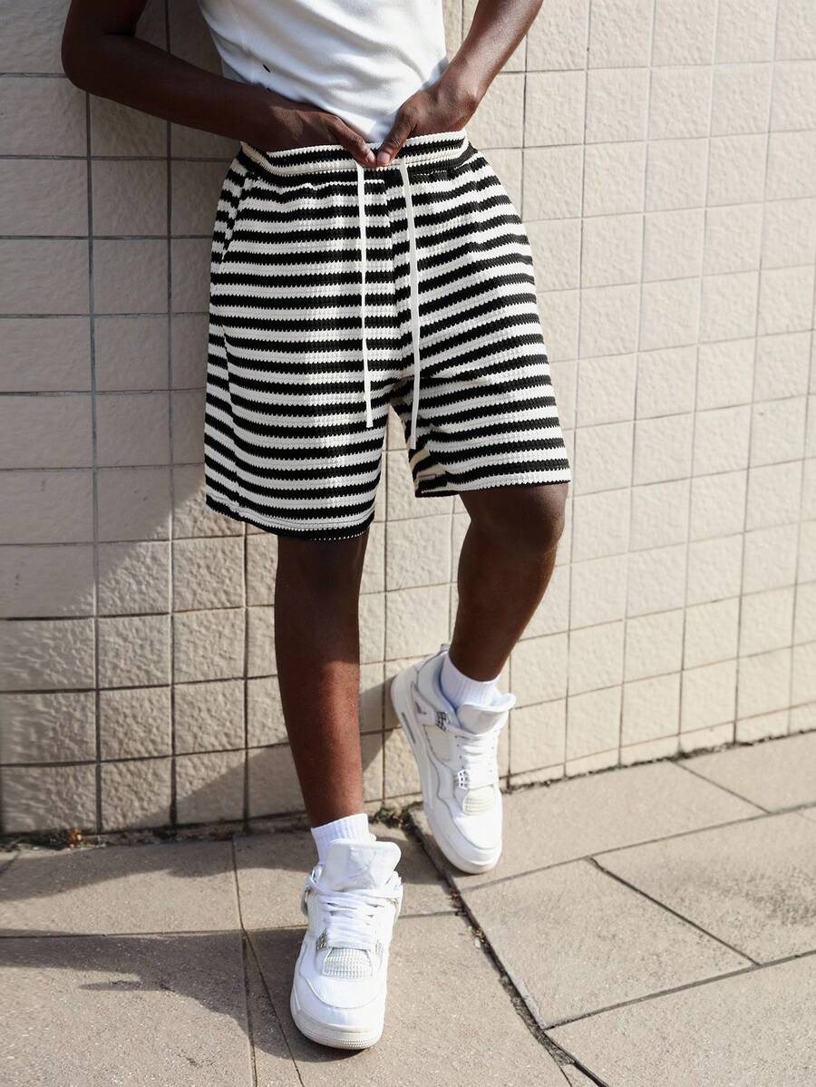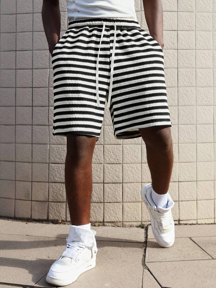 Street Life Pantaloncini estivi casual da uomo, con vita con laccetto, stampa a righe lavorata a maglia, comodi e informali per vacanze e uso quotidiano