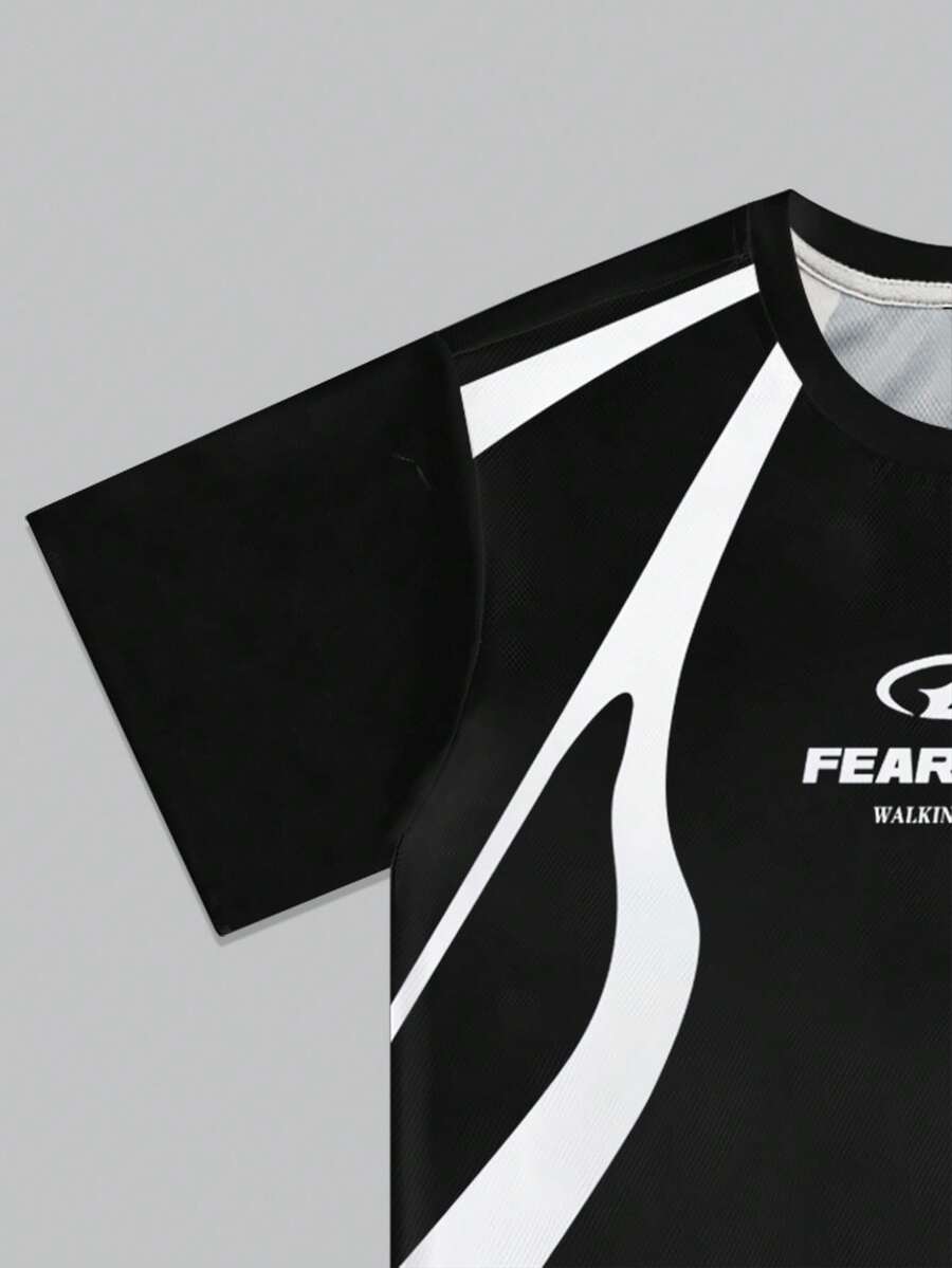 Prep T-shirt casual da uomo estiva con stampa a lettere e colore a contrasto, collo rotondo, maniche corte