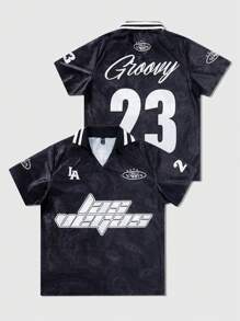 Street Life Polo manica corta estiva da uomo in maglia casual con motivi a lettera e righe, ideale per la scuola