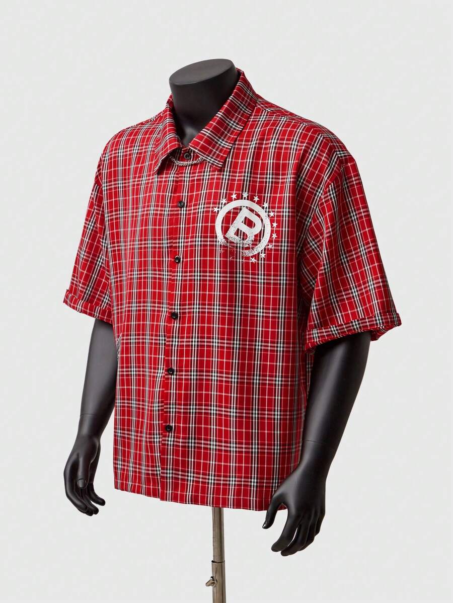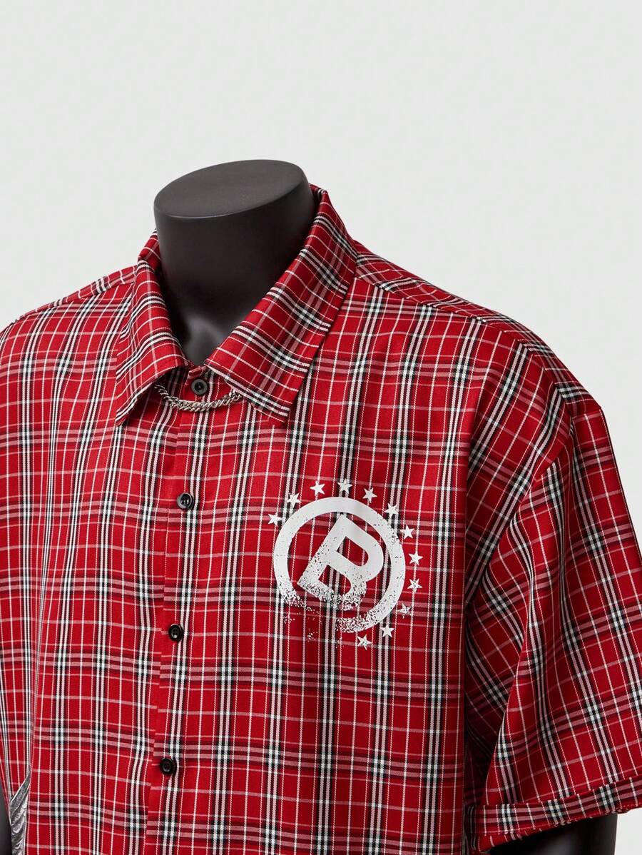 Street Life Camicia estiva a maniche corte da uomo, con stampa a scacchi con testo inglese unico raffigurante un bambino angelo