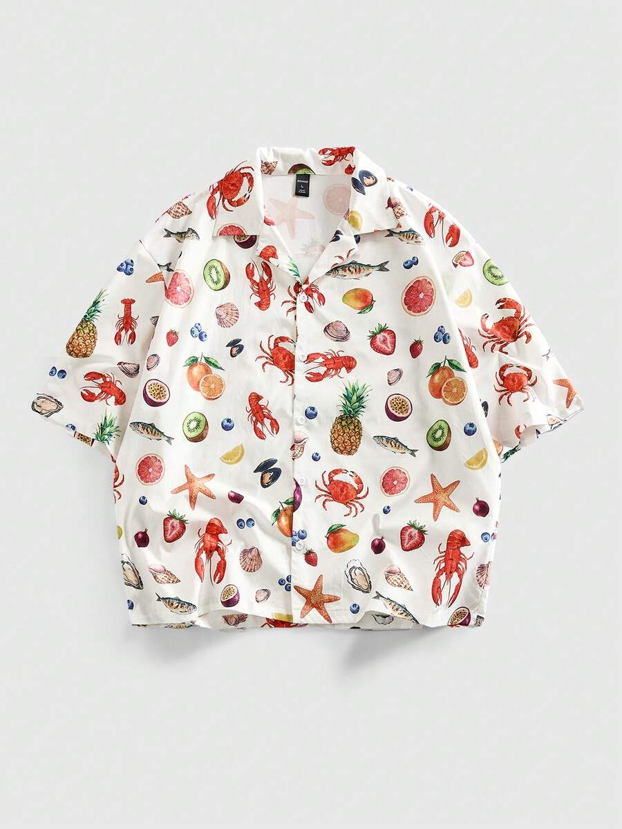 Street Life Camicia a maniche corte con stampa digitale e bottoni, adatta per l'estate e le vacanze degli uomini
