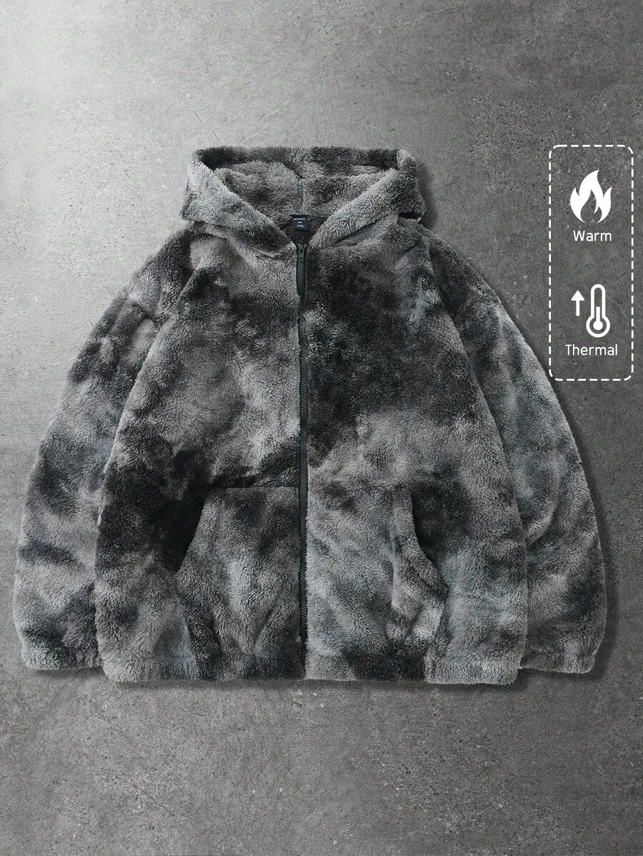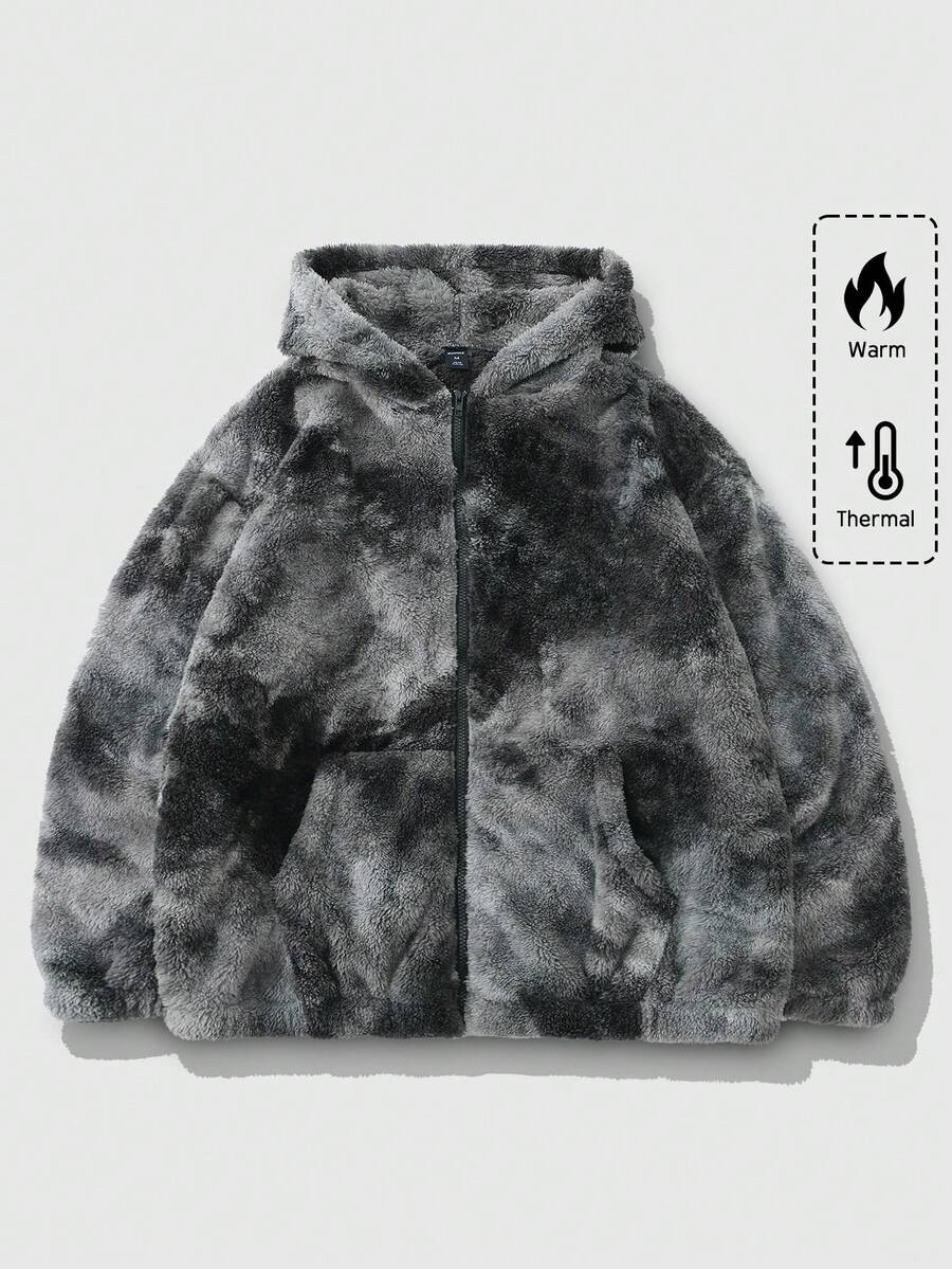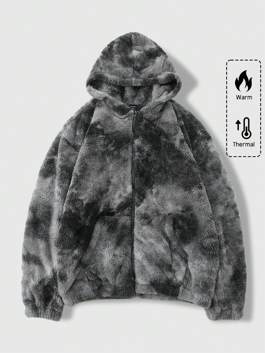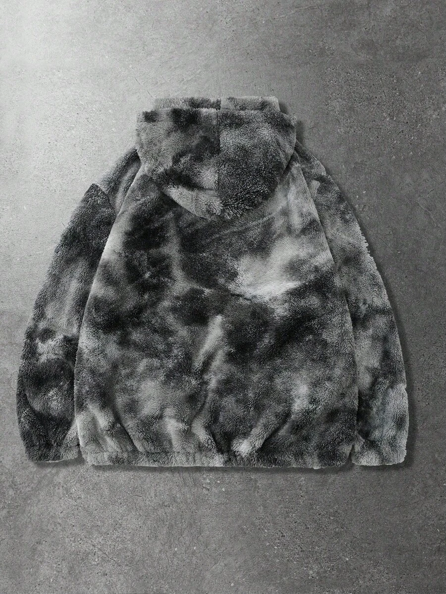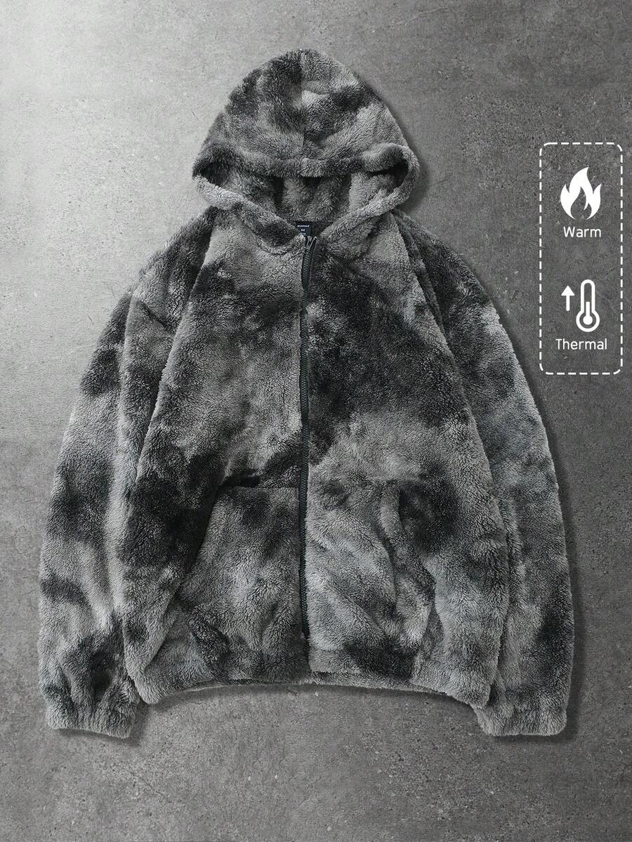 Street Life Giacca con cappuccio in pile con chiusura lampo e tasche, a maniche lunghe, con stampa Tintura a nodi, per uomo, autunno/inverno
