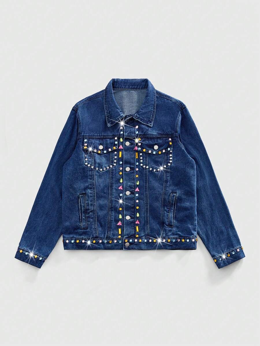 Street Life Giacca di jeans da uomo con colletto alla coreana, monopetto, con taschino con strass, adatta per l'uso quotidiano e per il pendolarismo, manica lunga
