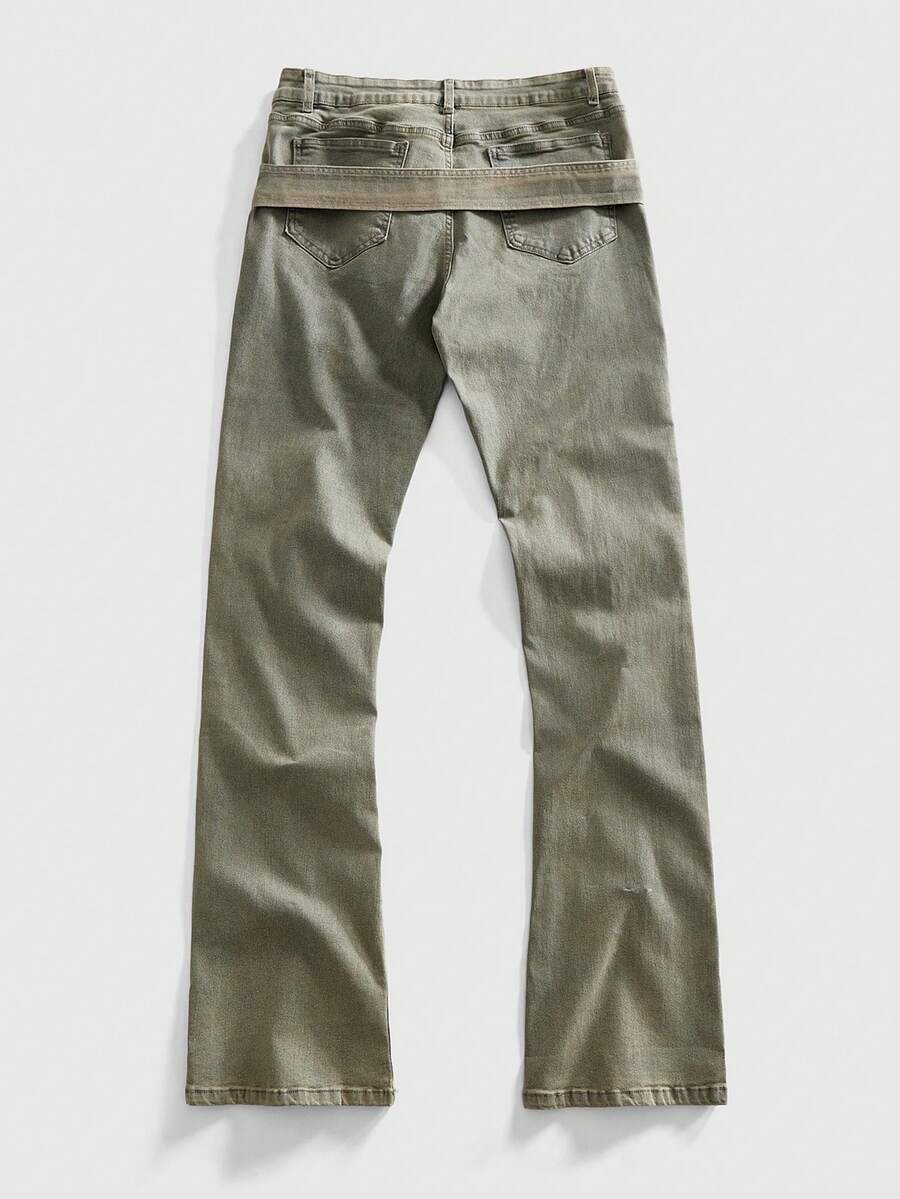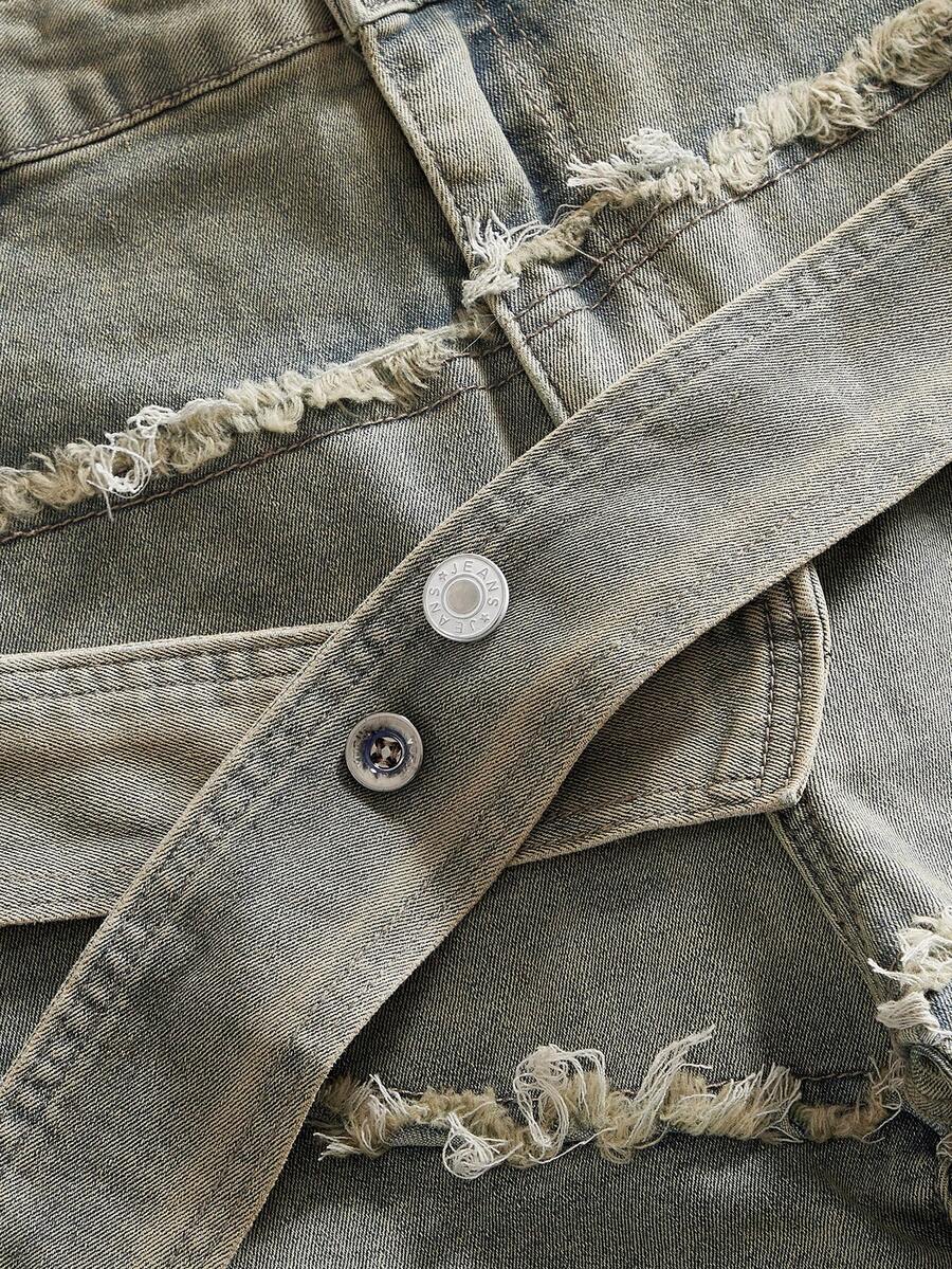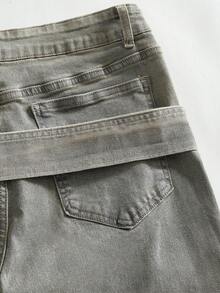 Street Life Jeans in denim con design a fibbia in vita, effetto consumato e strato sovrapposto