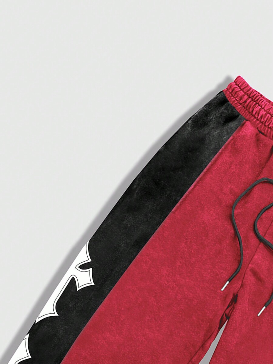 Street Life Pantaloni della tuta casual da uomo con vita annodabile, colore a blocchi effetto lavato, con patchwork sulla parte anteriore