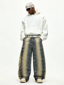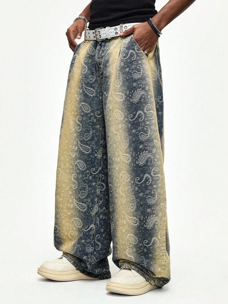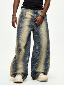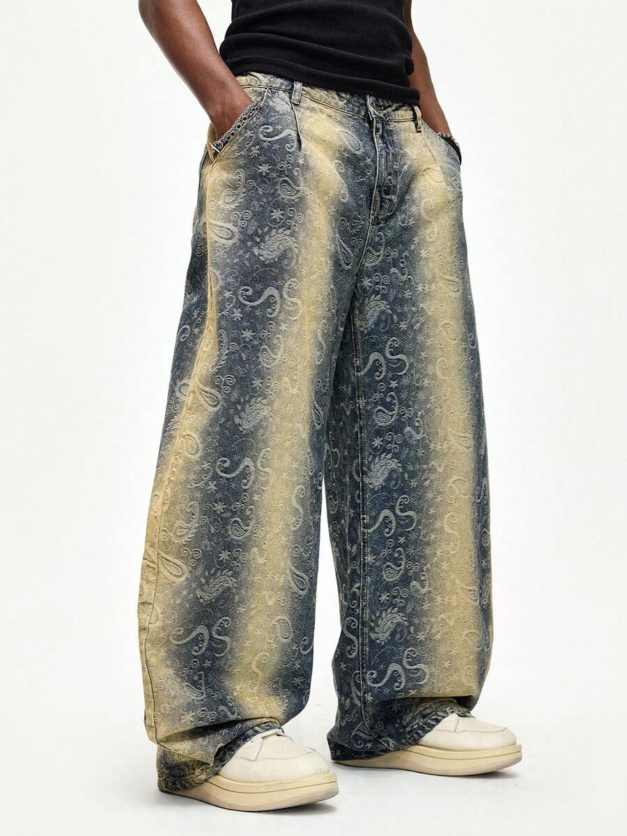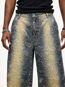 Street Life Jeans in denim lavato con gamba curva e motivo a fiori di anacardi per uomo