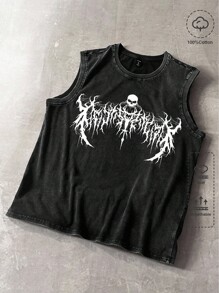 Goth Canotta da uomo lavata con stampa gotica scura, girocollo, senza maniche, effetto consumato, adatta per Ognissanti
