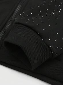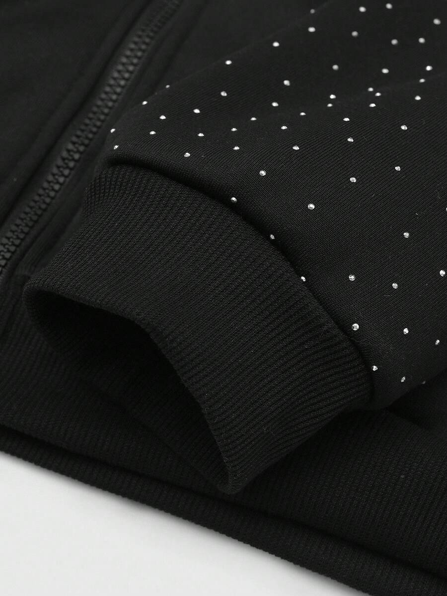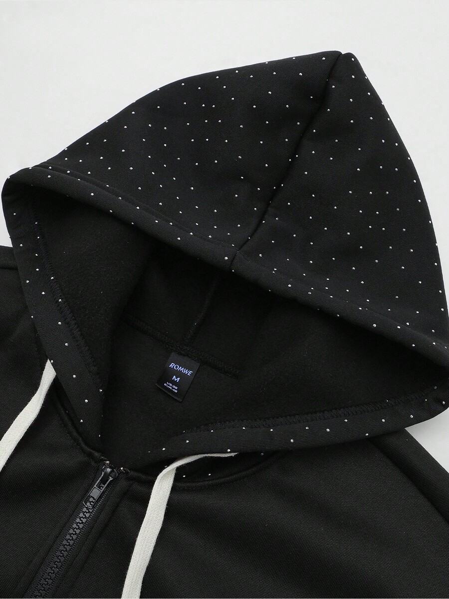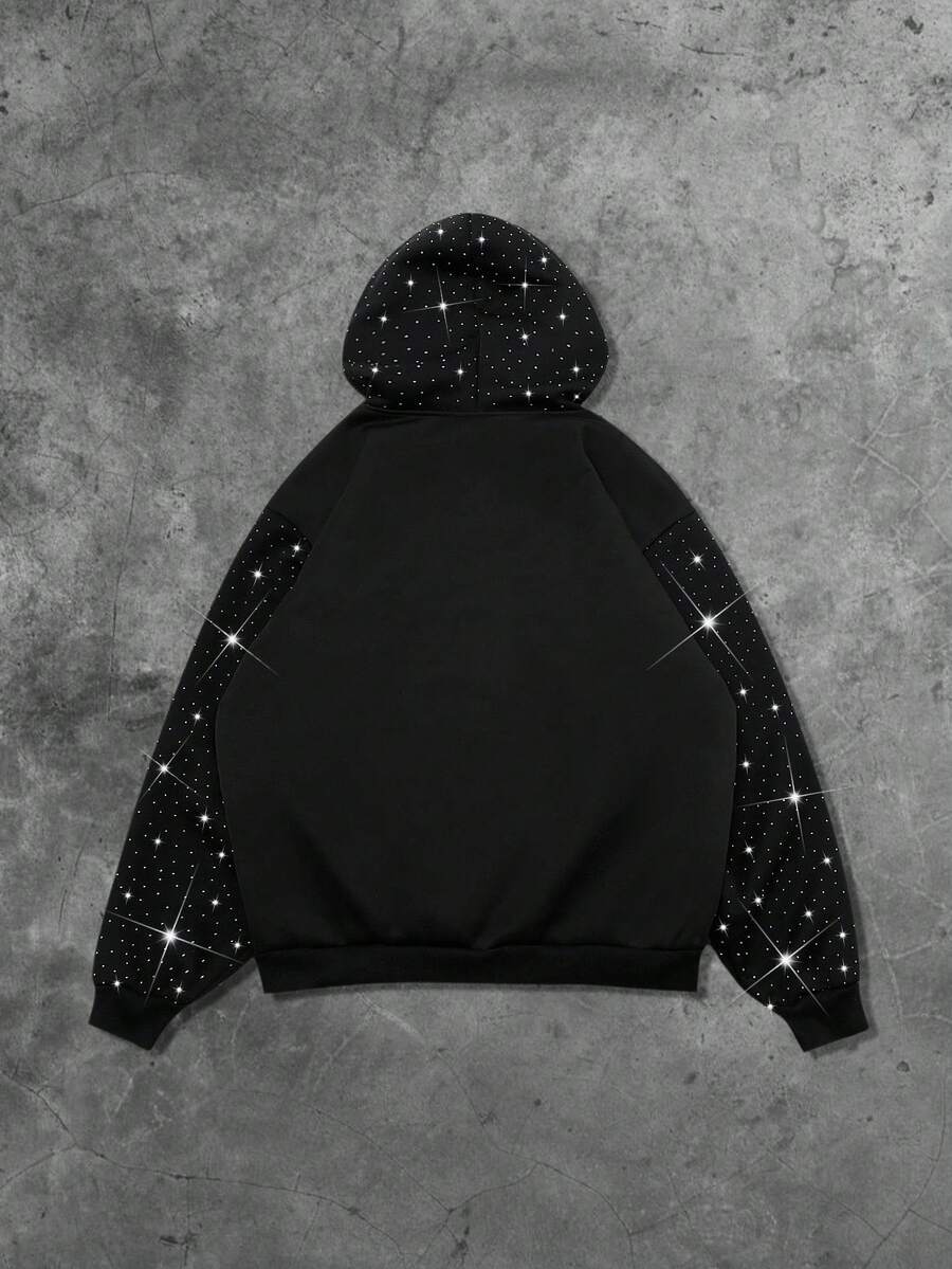Street Life Felpa con cappuccio da uomo con chiusura lampo, stile di strada, ricamo di strass americano, stampa grafica in inglese, felpa con cappuccio per autunno/inverno