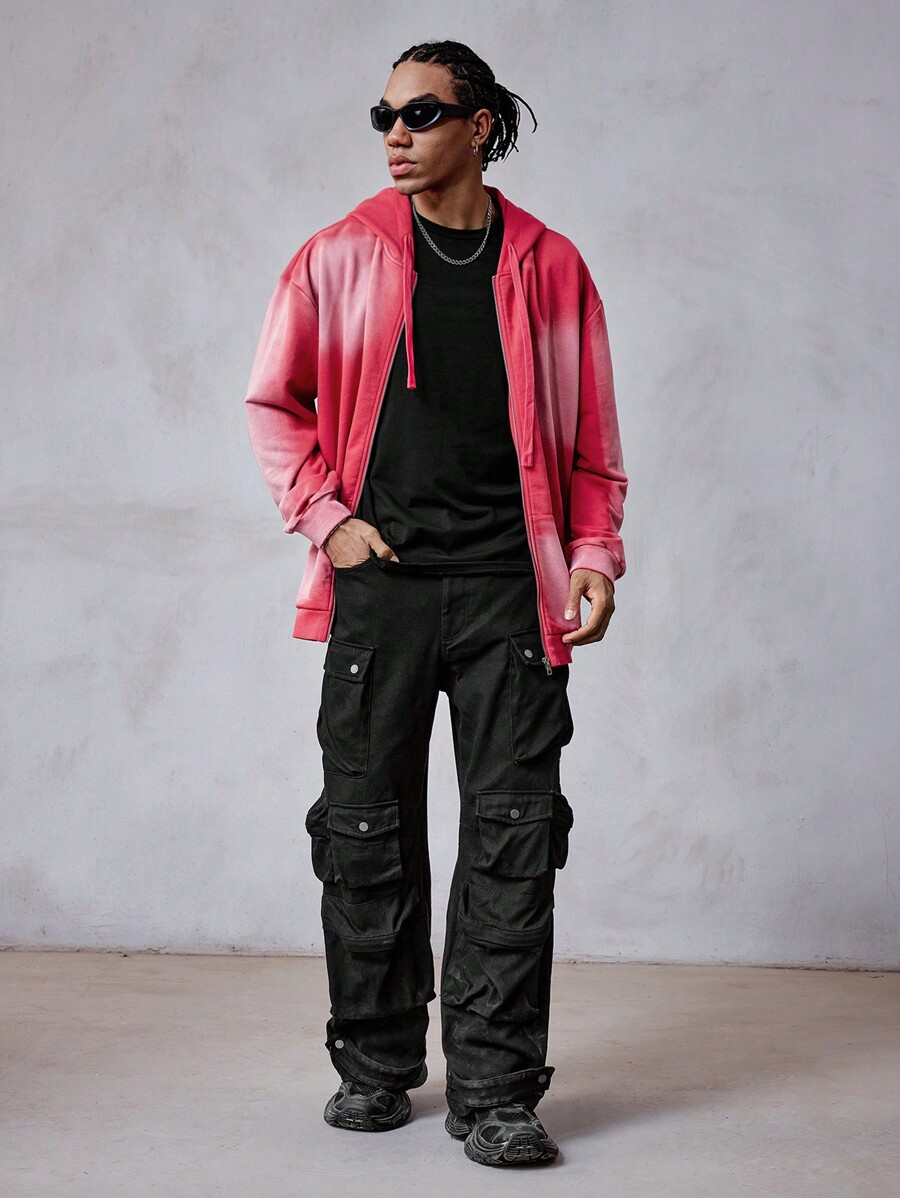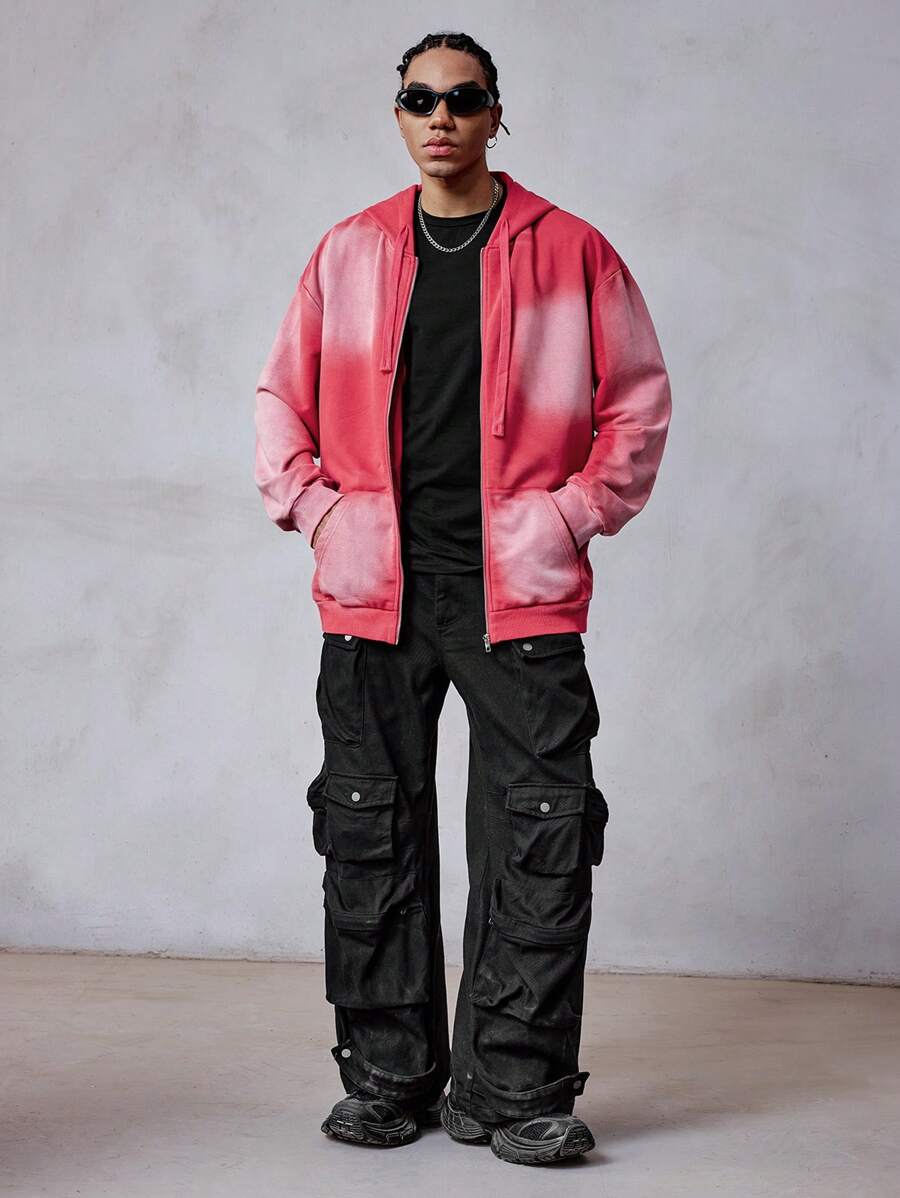 Street Life Felpa con cappuccio e cerniera con tasche da uomo, design minimalista casual