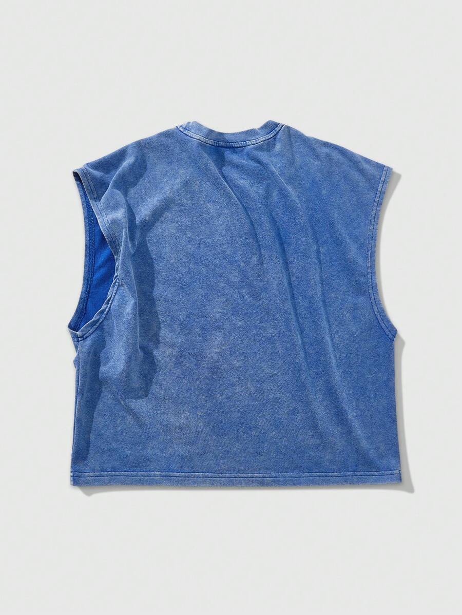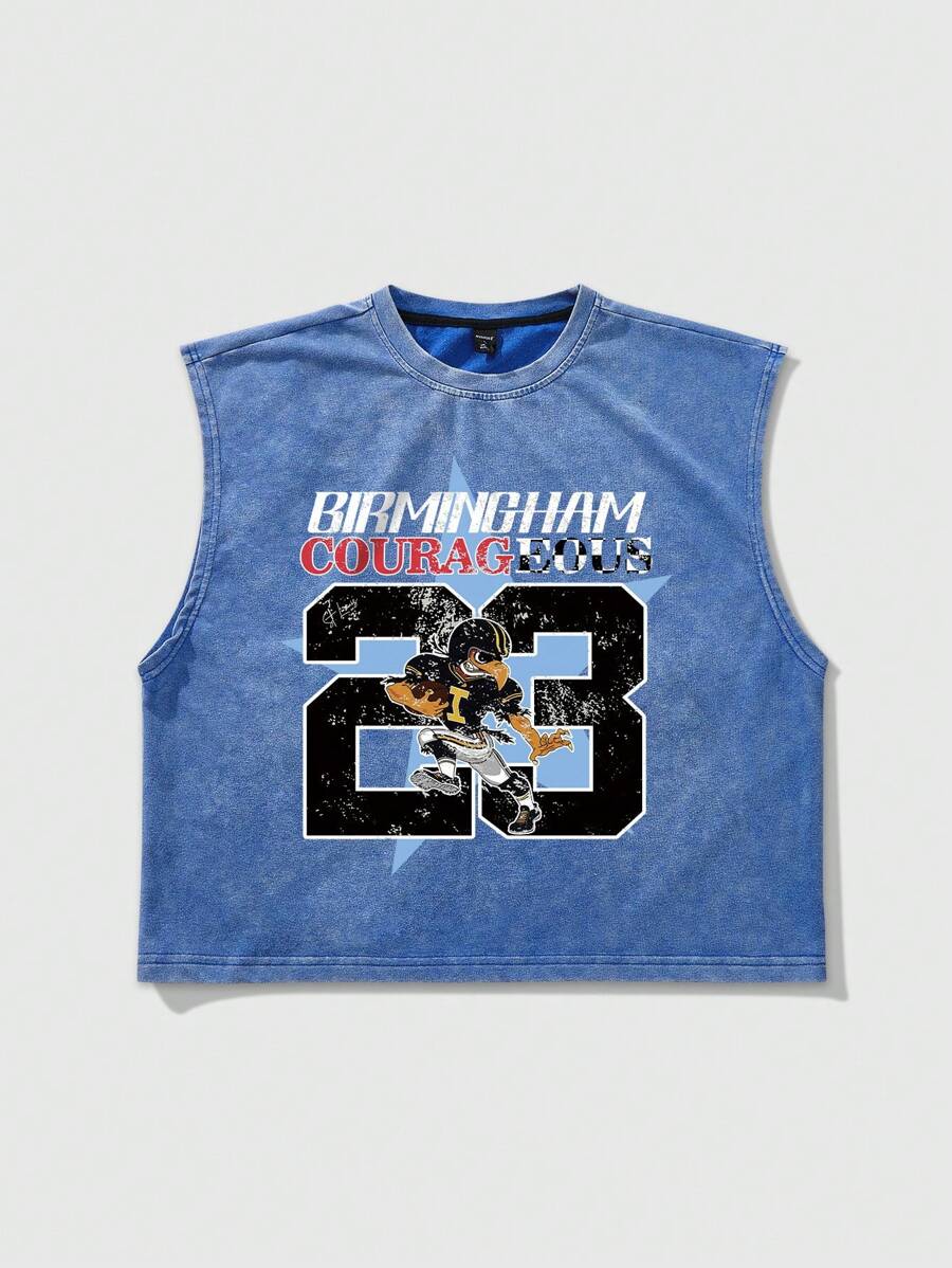Street Life Nuovo Gilet corto da uomo estivo, lavato con sabbia, con stampa di grafiche di cartoni animati americani