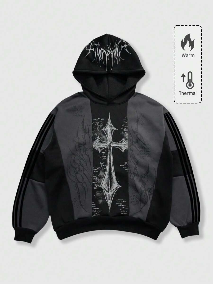 Street Life Felpa con cappuccio casual da uomo in stile punk, adatta per l'autunno/inverno