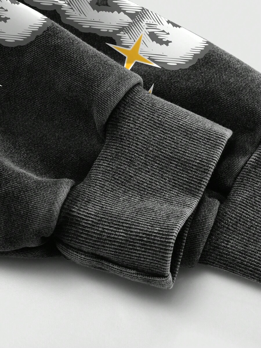 Street Life Felpa con cappuccio uomo stile casual di strada, grafica retrò di ritratti graffiti lavata