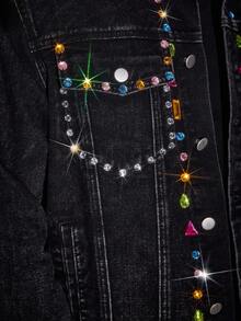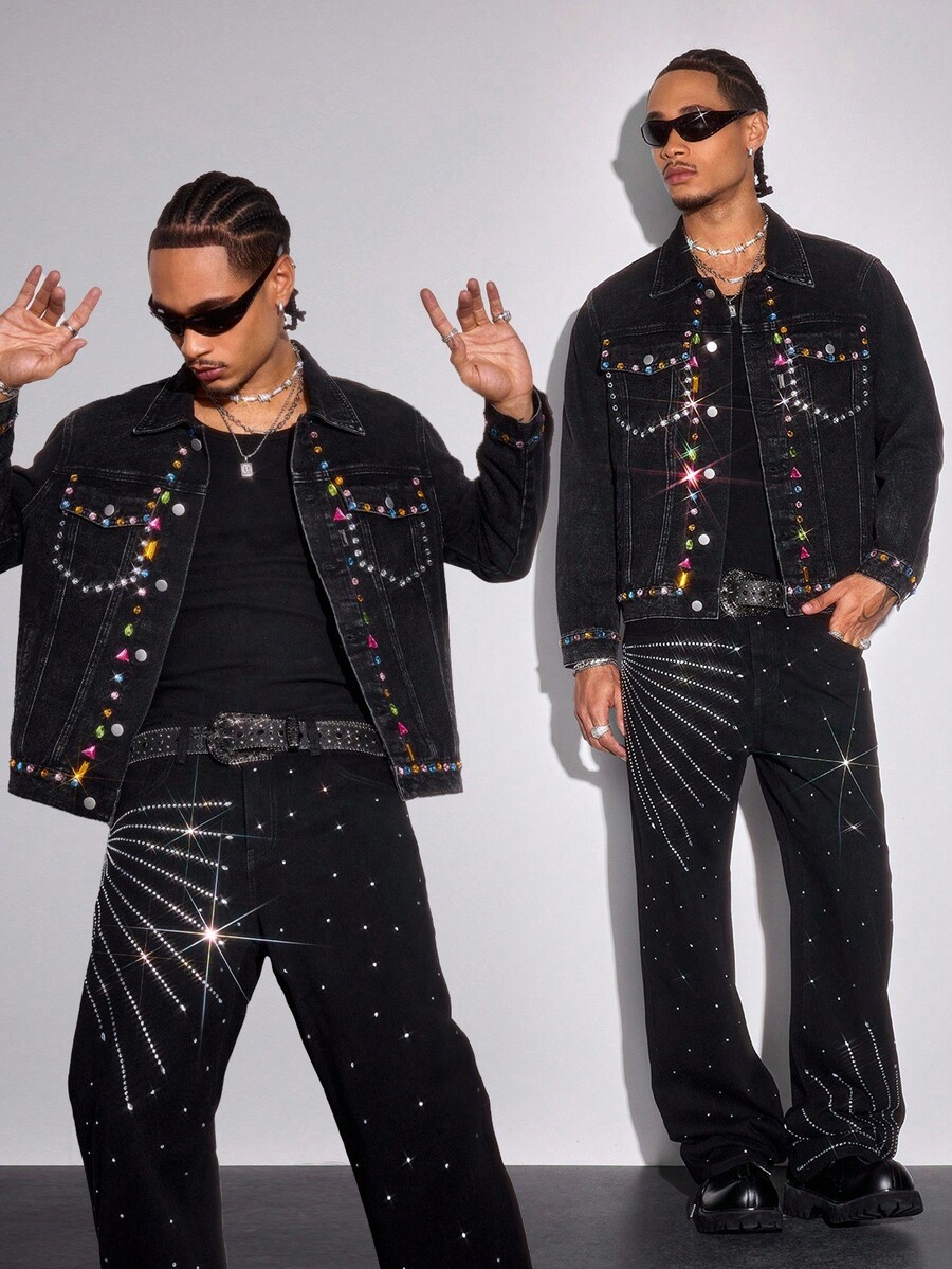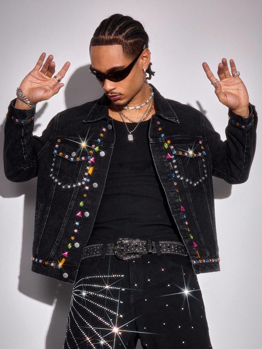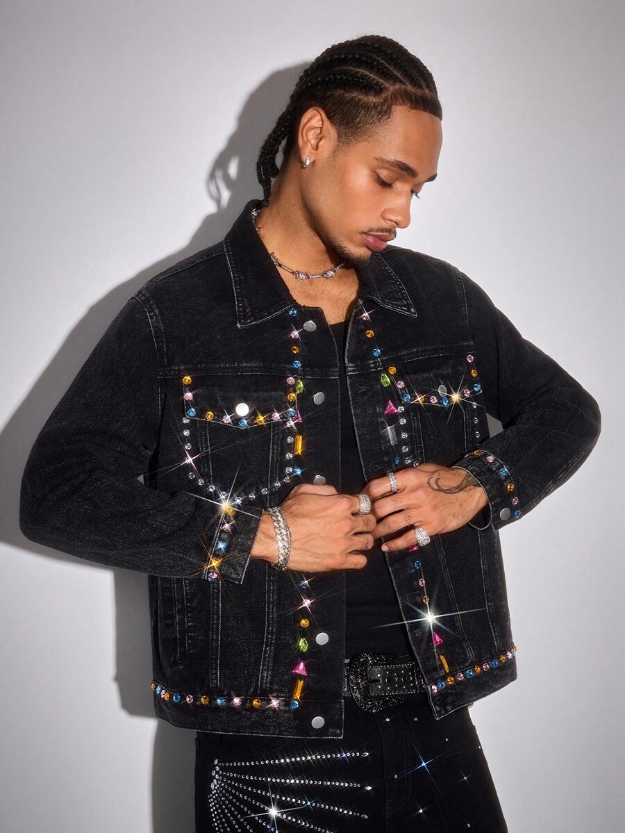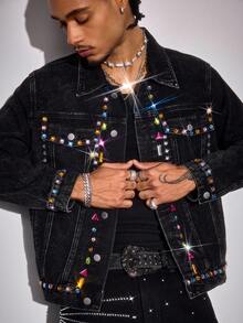 Street Life Camicia in denim casual e ampia con applicazioni di strass, per uomo, per l'autunno