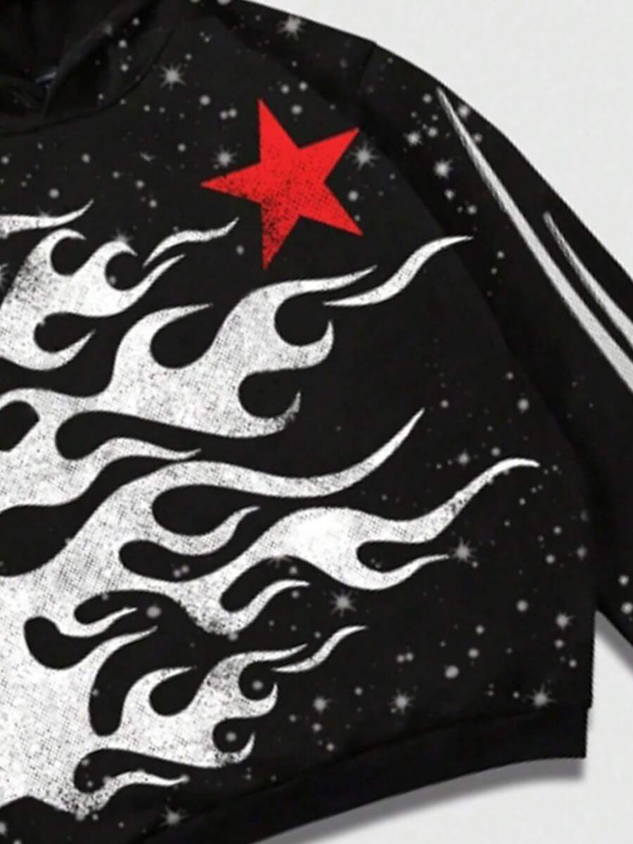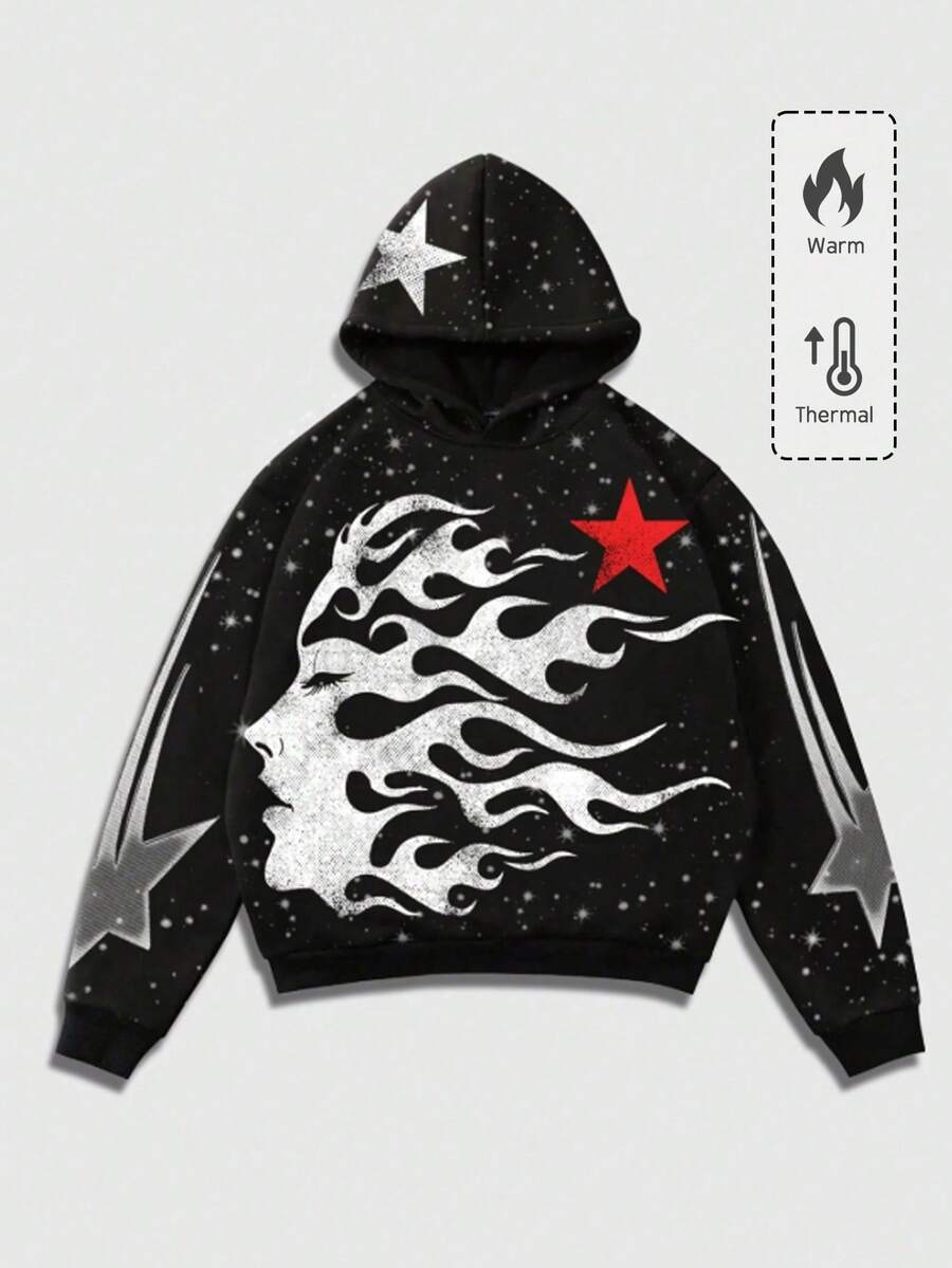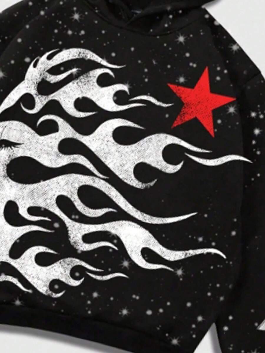 Street Life Felpa con cappuccio casual a maniche lunghe con stampa a stelle per ragazzi adolescenti